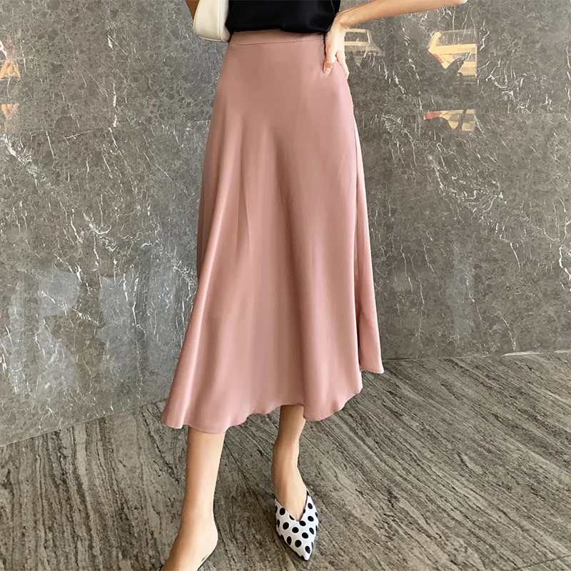2026 New Dress Spring and Autumn Satin Big Swing Long Skirt Silky High Quality Acetate Satin A-line Skirt for Ladies