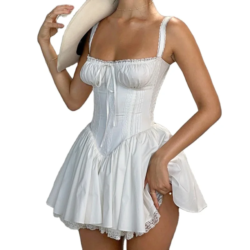 2026 Hot New Dress Sweet and Spicy Spread Breast Strap Lace Patchwork Plastic Waist Women Corset Dress