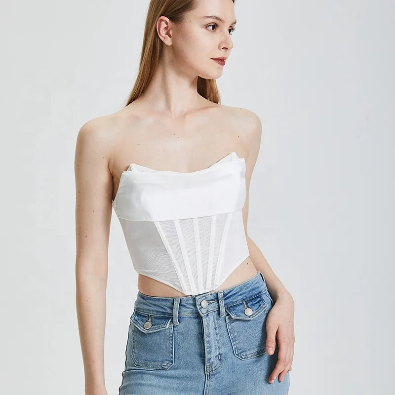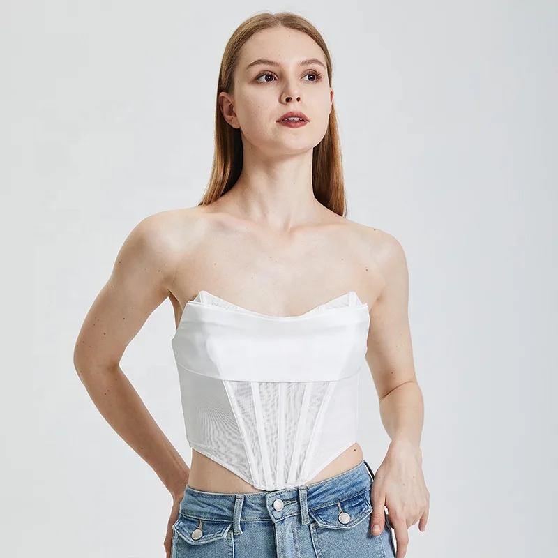 2026 Spring and Summer New French Design Chest-covering Simple Solid Color Slim Crop Mesh Top Women
