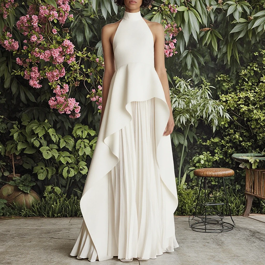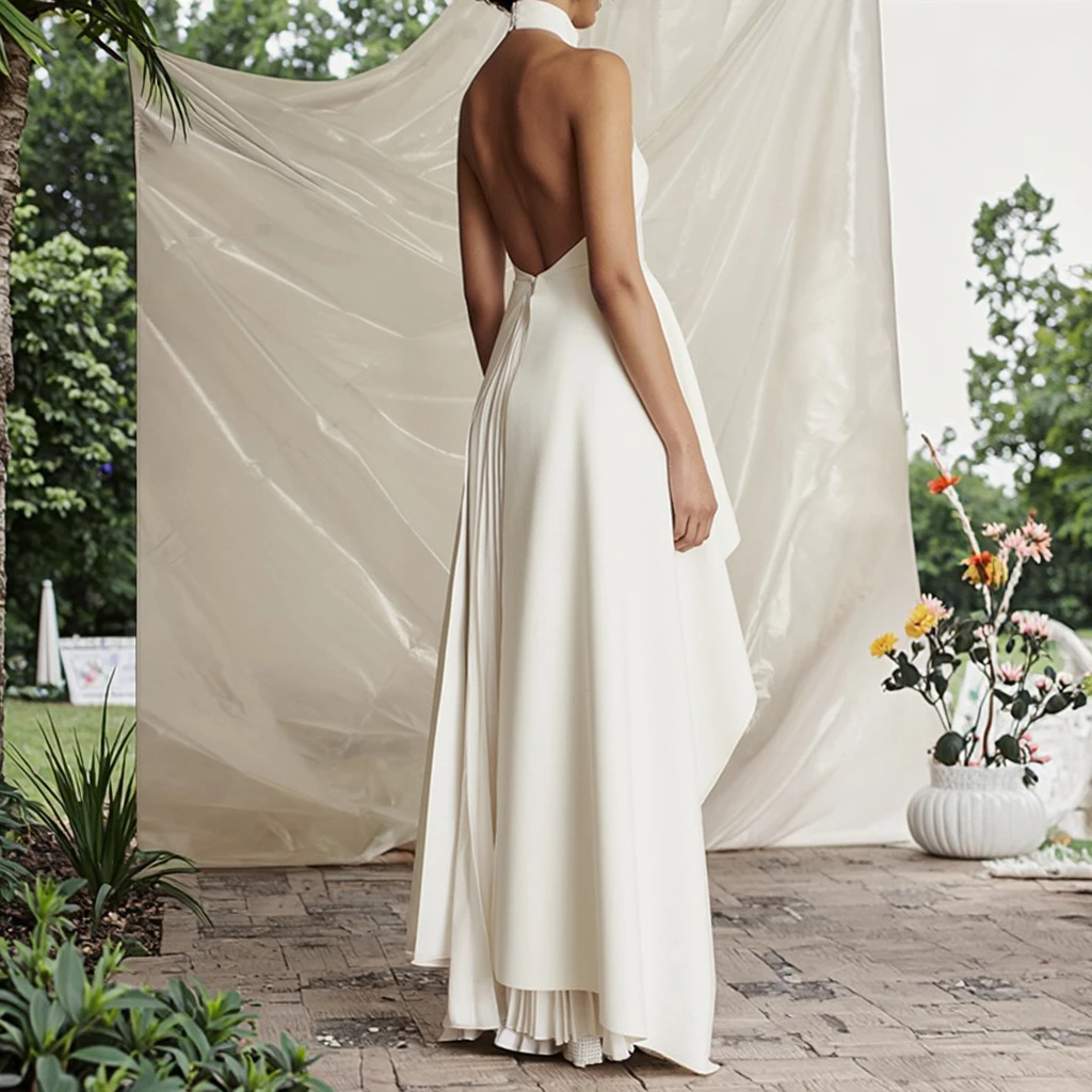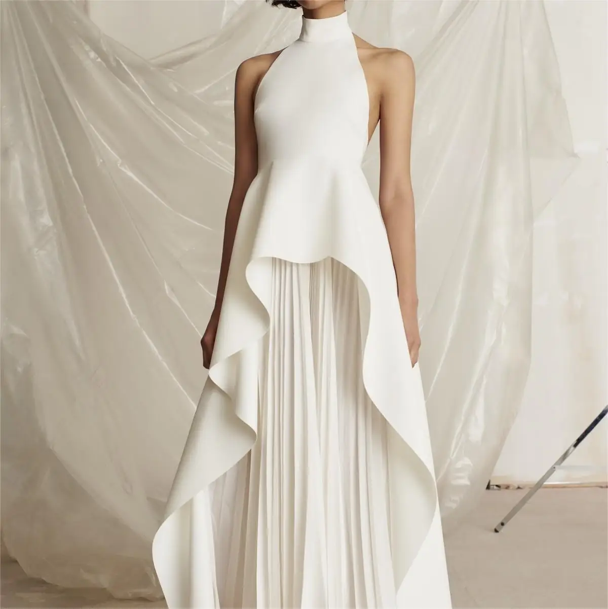 Elegant Formal Fashion High End Style Ladies Sleeveless Pleated Women Backless Sexy Party Evening Dress