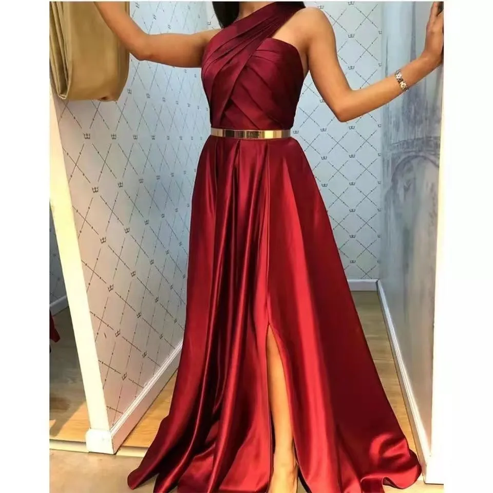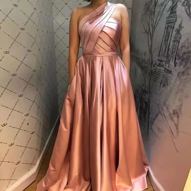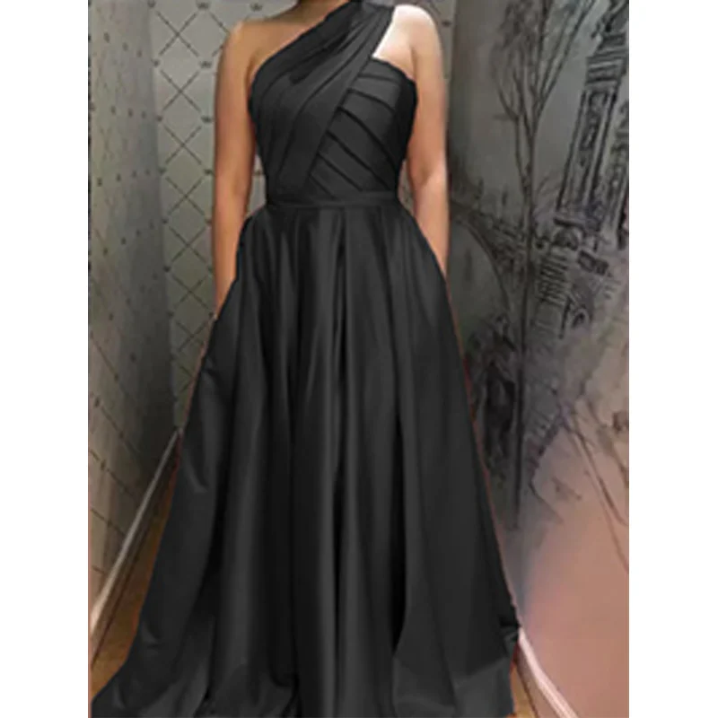 One Shoulder Solid Elegant Causal Elegant Sexy Women Ladies Plus Size Maxi Evening Dresses