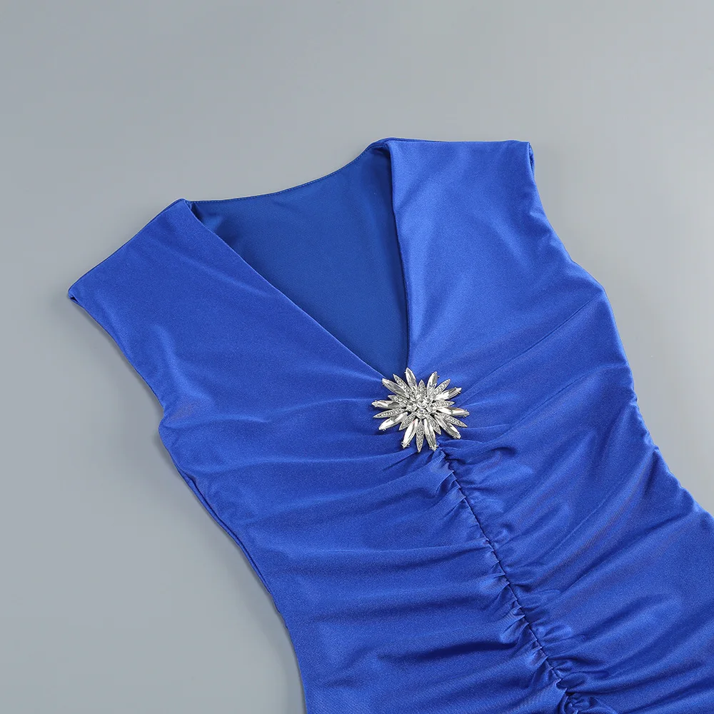 New Solid Color V-neck Sleeveless Dress for Women European and American Style High-end Sexy Pleated Fishtail Long Dress