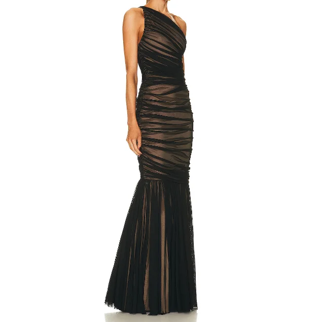 Custom Black Mesh Mermaid High Neck Backless Dress Women Elegant Sexy Spring Prom Long Birthday Parties Club Visits Empire