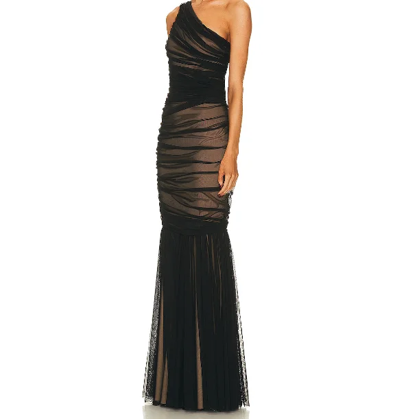 ZYHT 73904 Fashion One Shoulder Long Sleeve Bodycon Sexy Mermaid Maxi Elegant Evening Party Office Career Dress