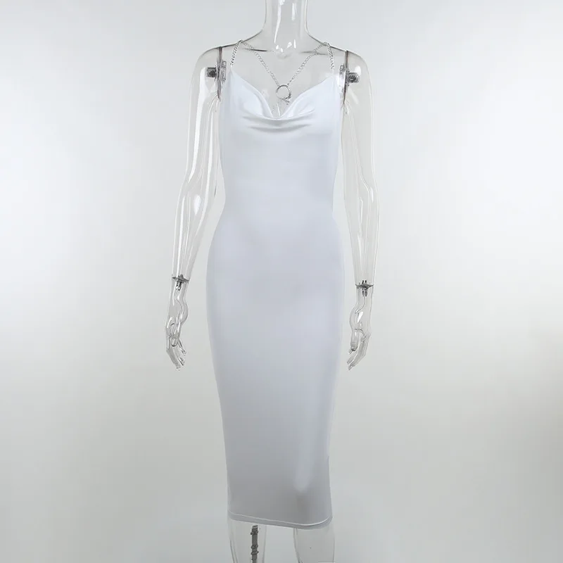 2026 Spring and Summer New Sexy Fashion Hollow Chain Colar Midi Backless Package Hip Skirt Dress Women's Clothing
