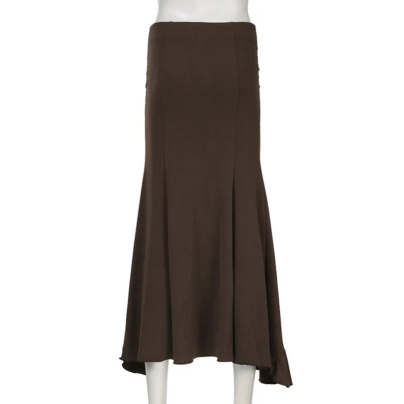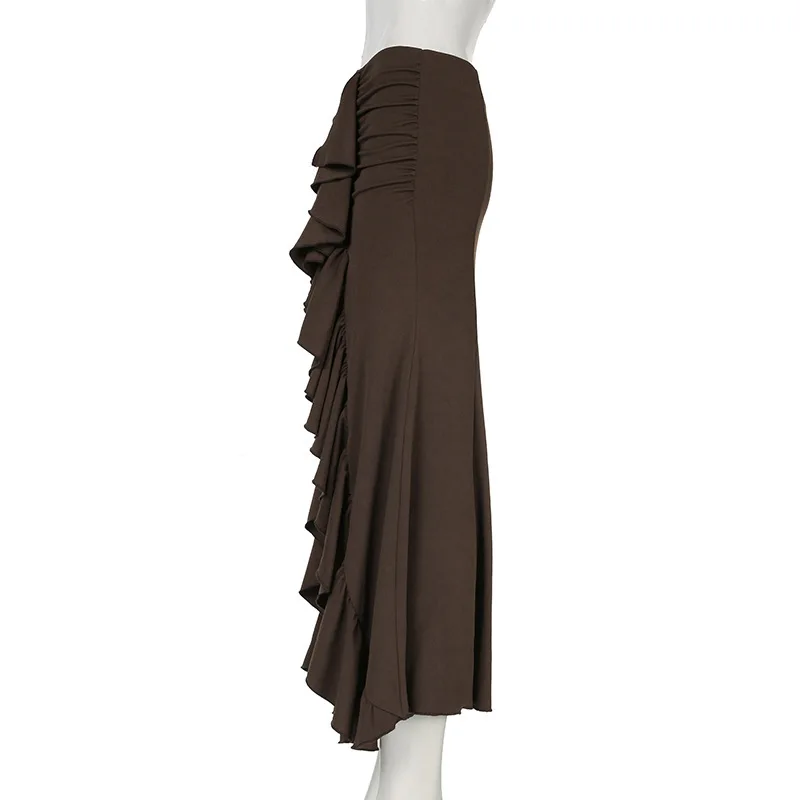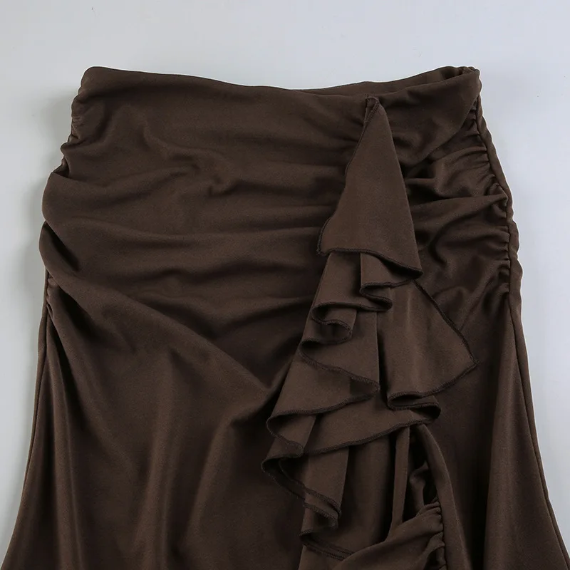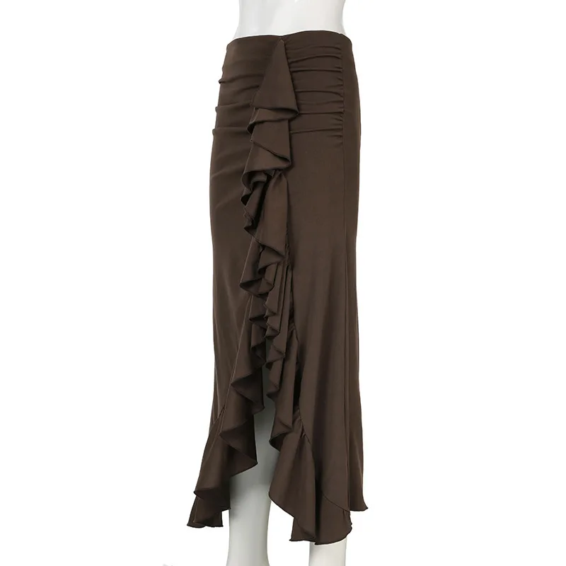 Summer Women's Satin Skirt Elegant Ruffles Shiny Skirt High Waist Mid-length Office Long Skirts for Womans