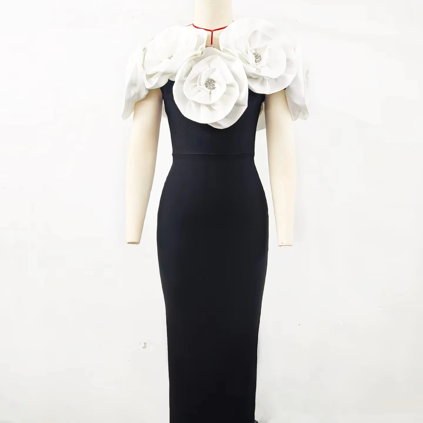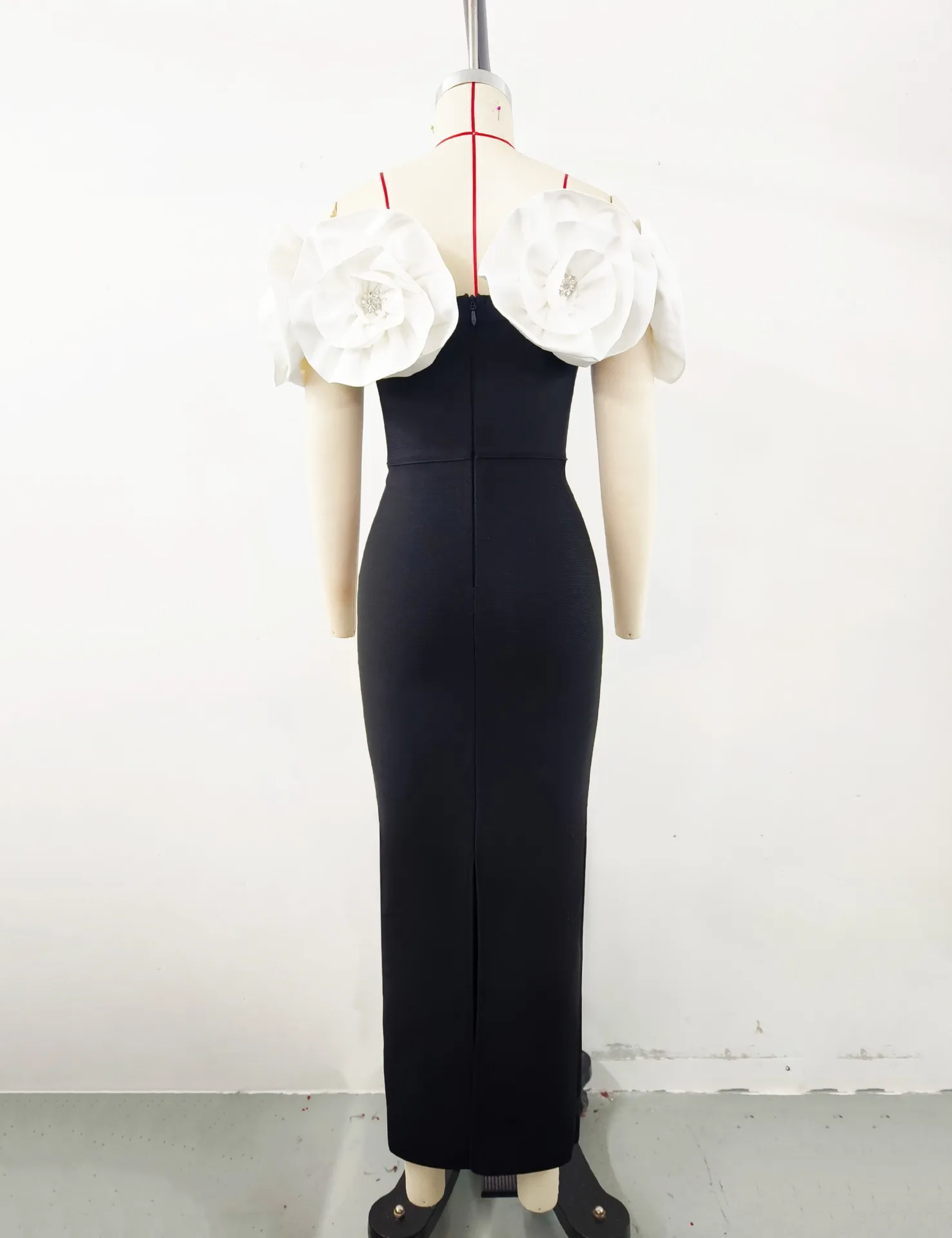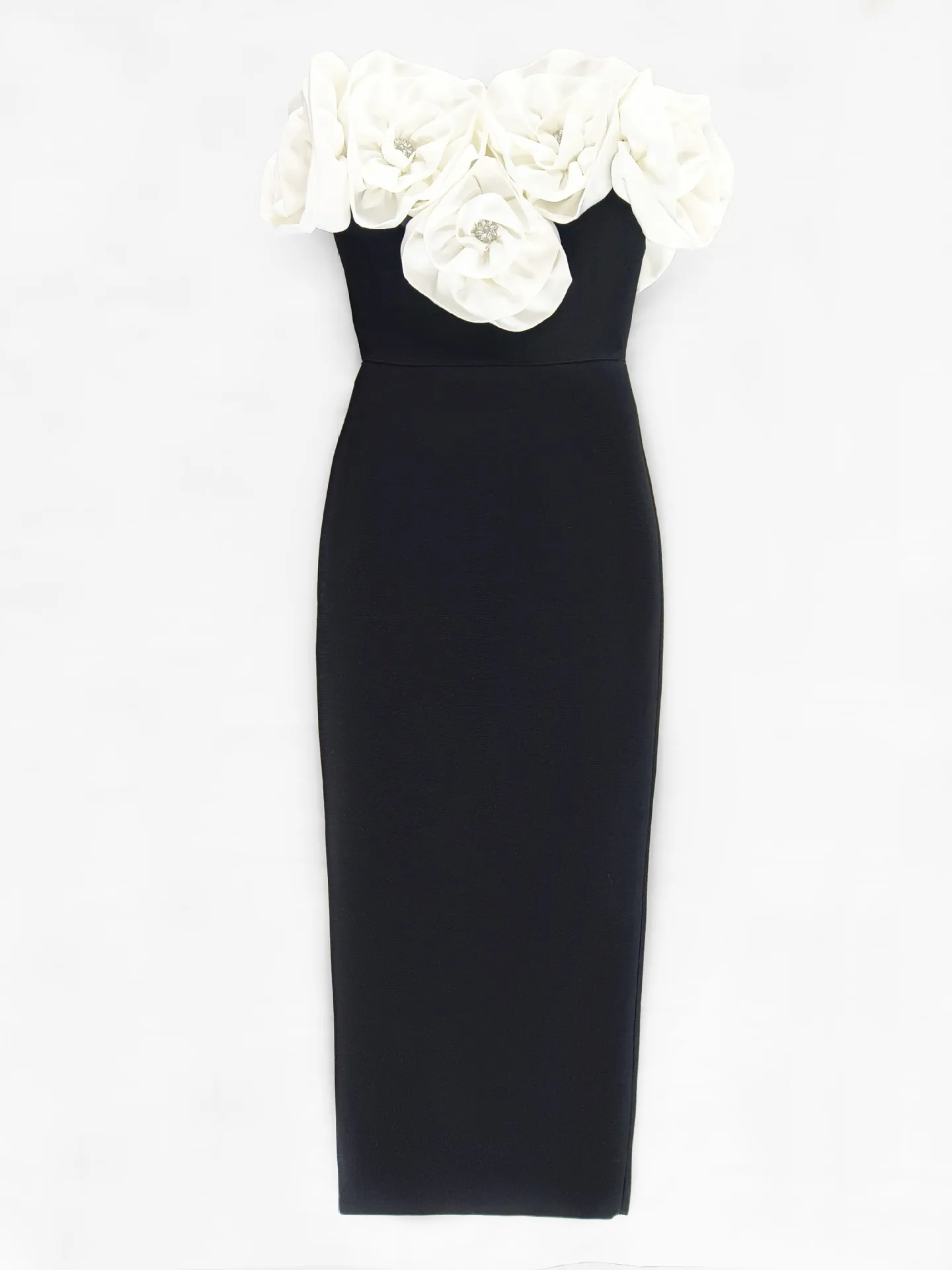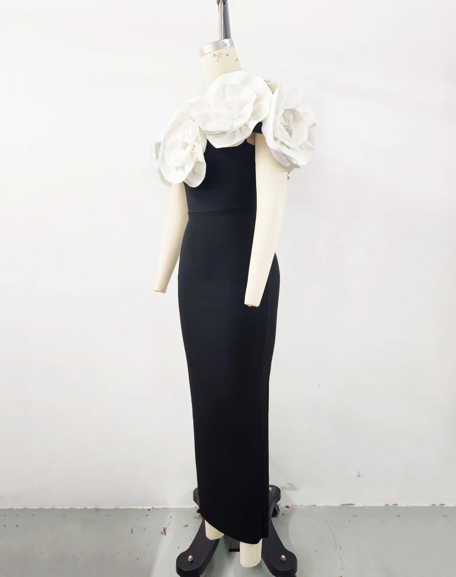 High Quality Luxury Long Evening Dresses White Large 3D Flowers Strapless Bodycon Elegant Para Mujeres Bandage Dress