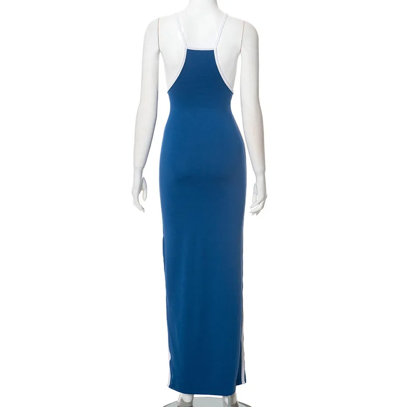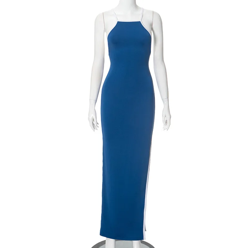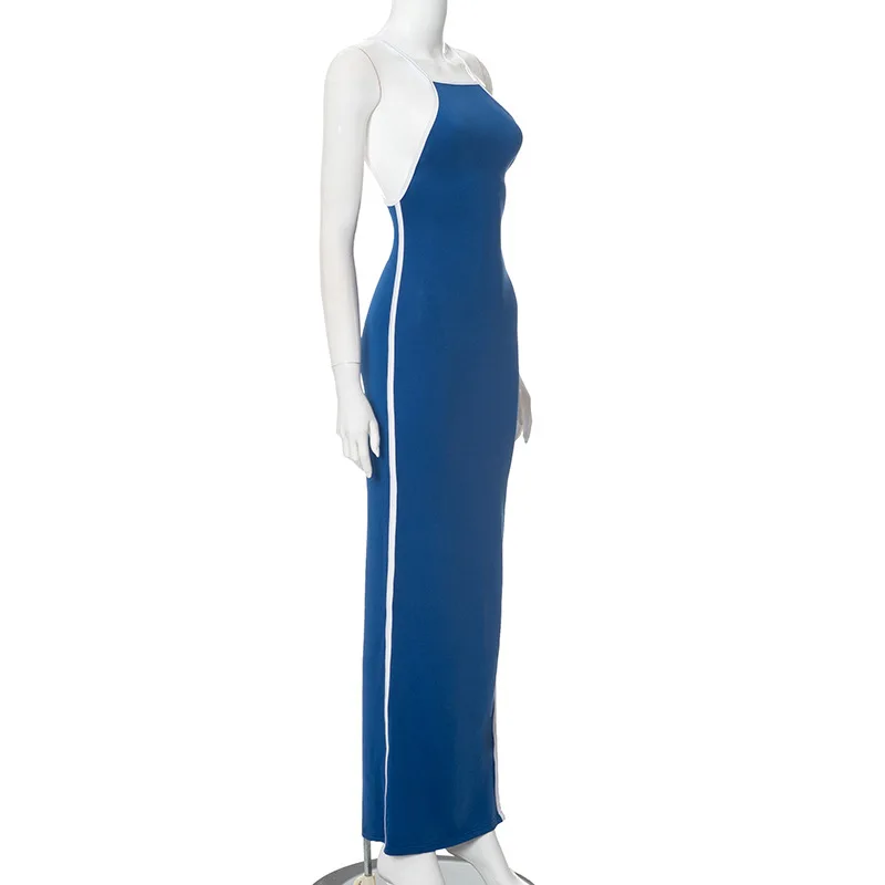 2026 Custom European Women's Summer New Style Color-matching Sleeveless Square-neck Sexy Full-skirted Halter Dress