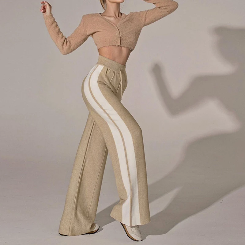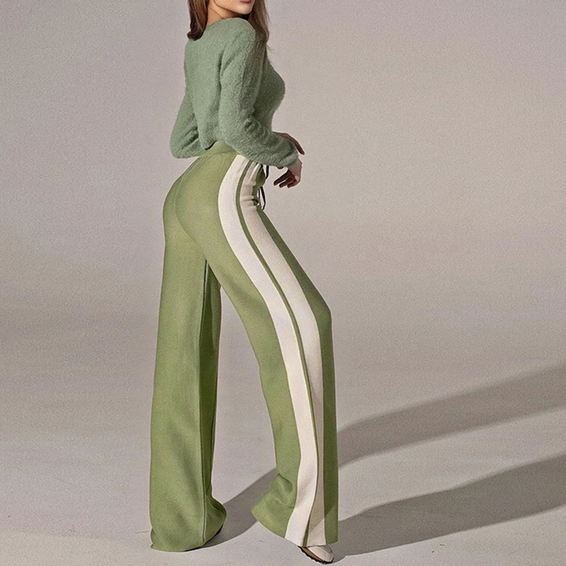 Contrast Color Stripe Wide-leg Casual Trousers Sweatpants Women New Autumn Women's High Waist Slim Loose Fashion Pants