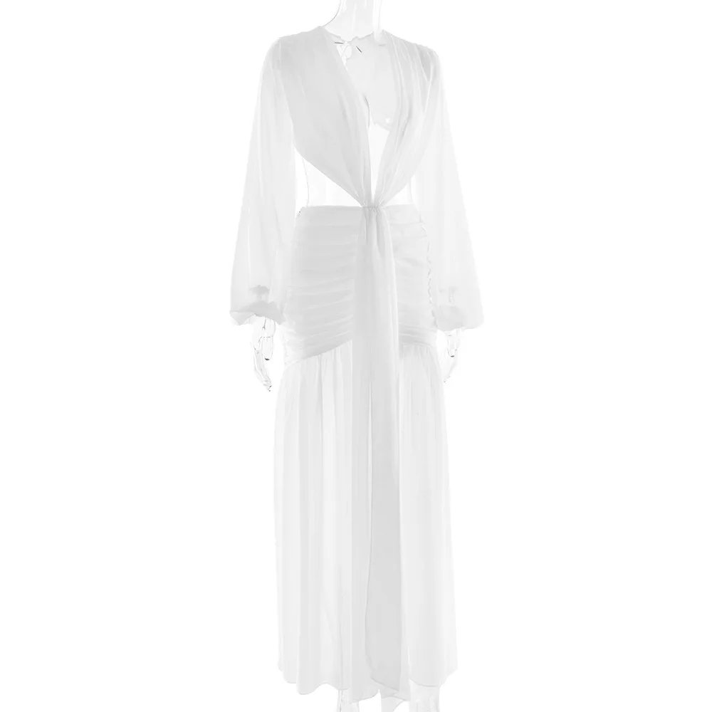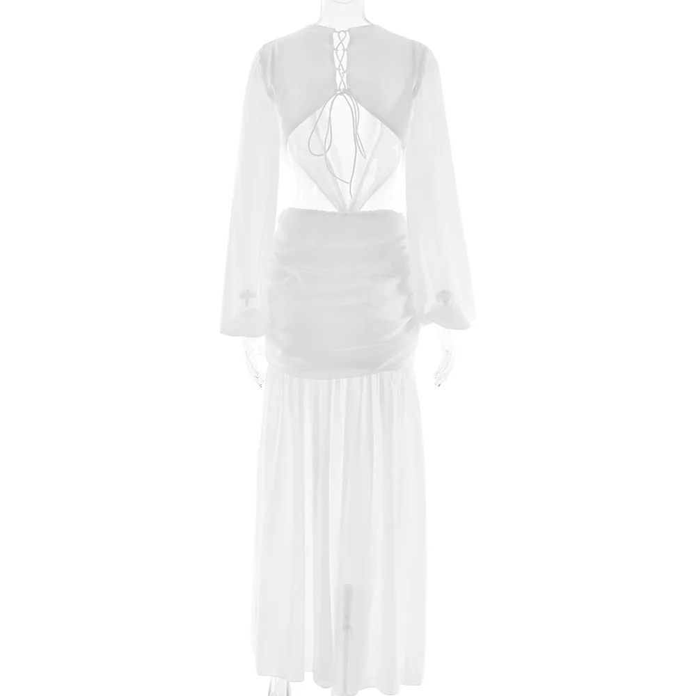 Women's 2026 New Fashion Casual Joker Pleated Slim V-neck Midi Dress Retro Ladies Long Sleeve Chic Dress