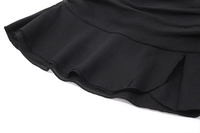 ZYHT 82055 Casual Summer Women's Black Peplum Top Blouse Contrast White Lace Scalloped Hem Puff Sleeves Fabric Floral Pattern
