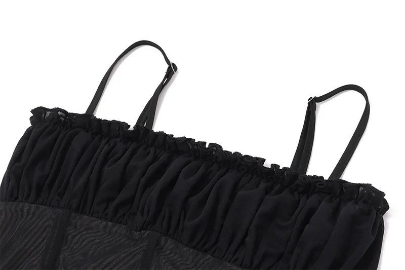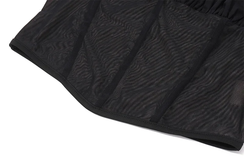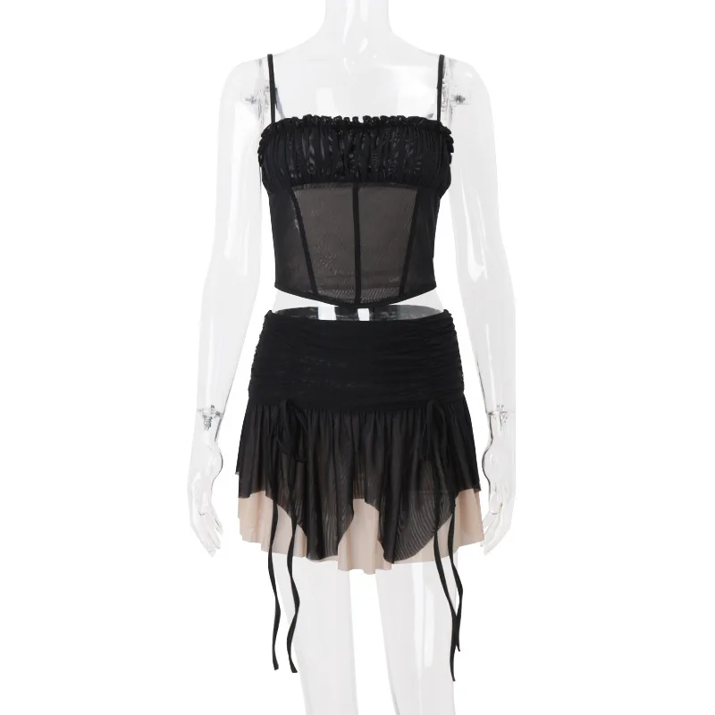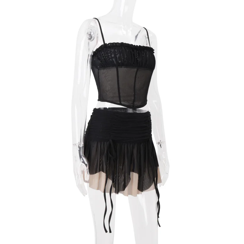2026 Mesh Top with Sexy Pleats and Low-Waist Pleated Skirt Set