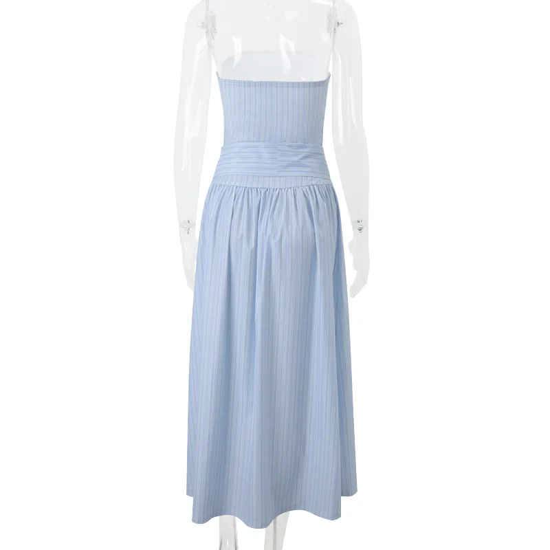 Preppy Style Striped Bowknot Sexy Strapless Long Dress 2026 Temperament Sweet Dress