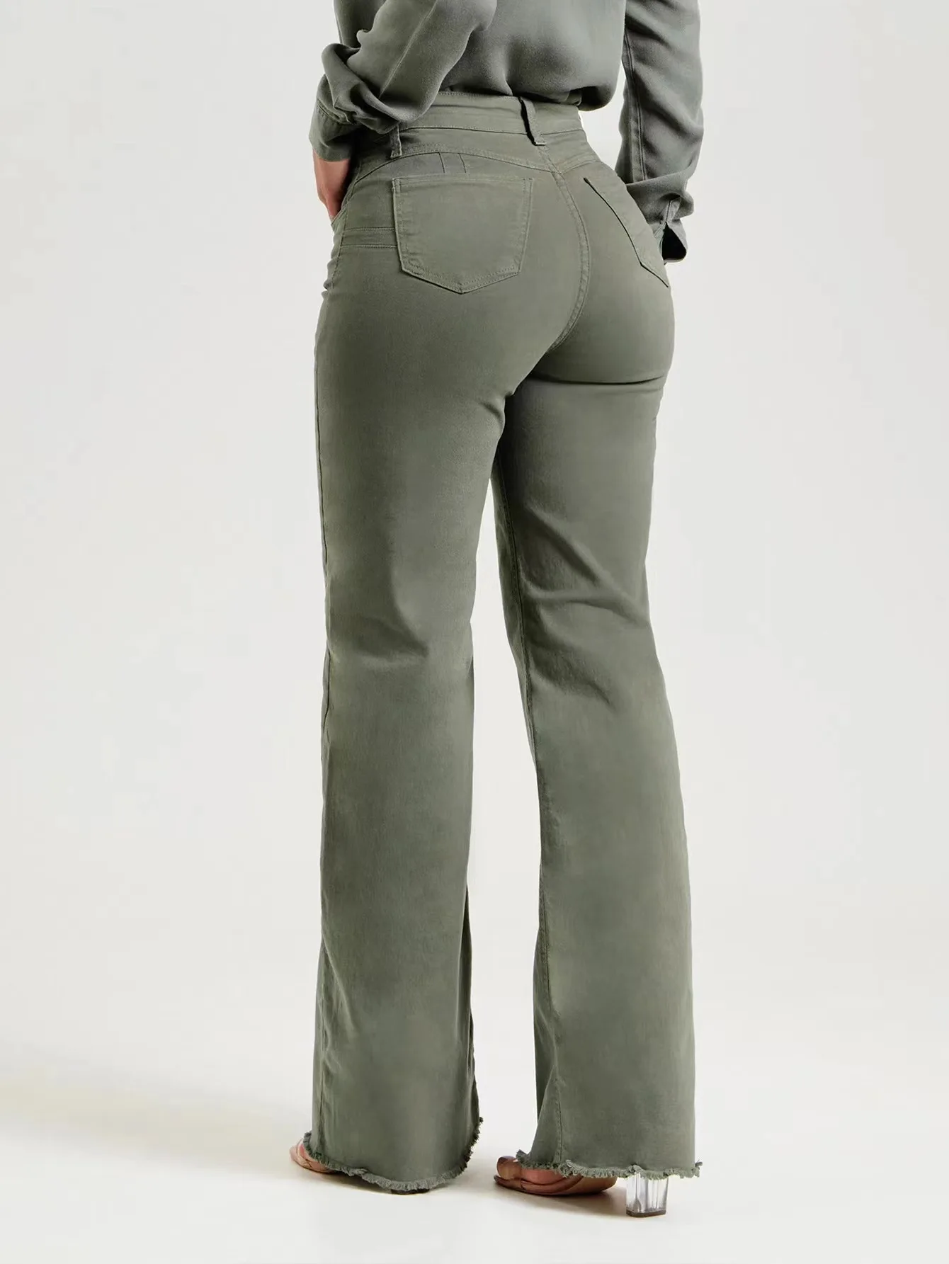 Spring 2026 New Solid Color Slim-fit Fashion Furred Edge Micro Flare Jean Pants for Women