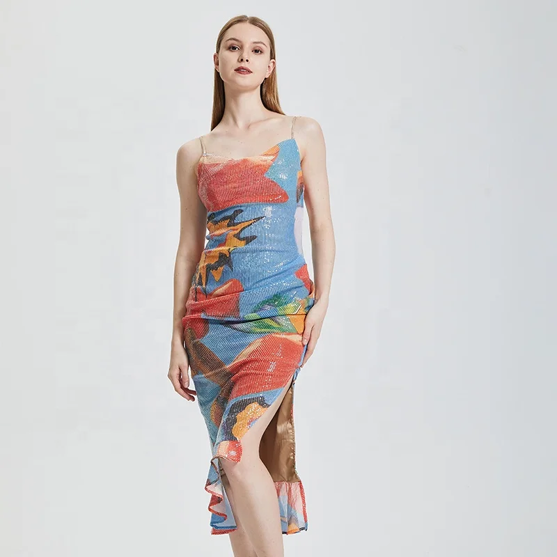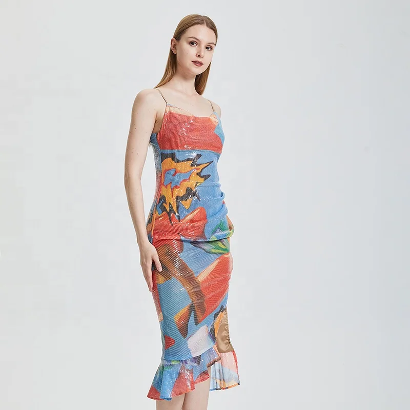 2026 Most Popular European and American Fashion Elegant Slim Fit Dress Women's Color Printed Slim Fit Party Dress
