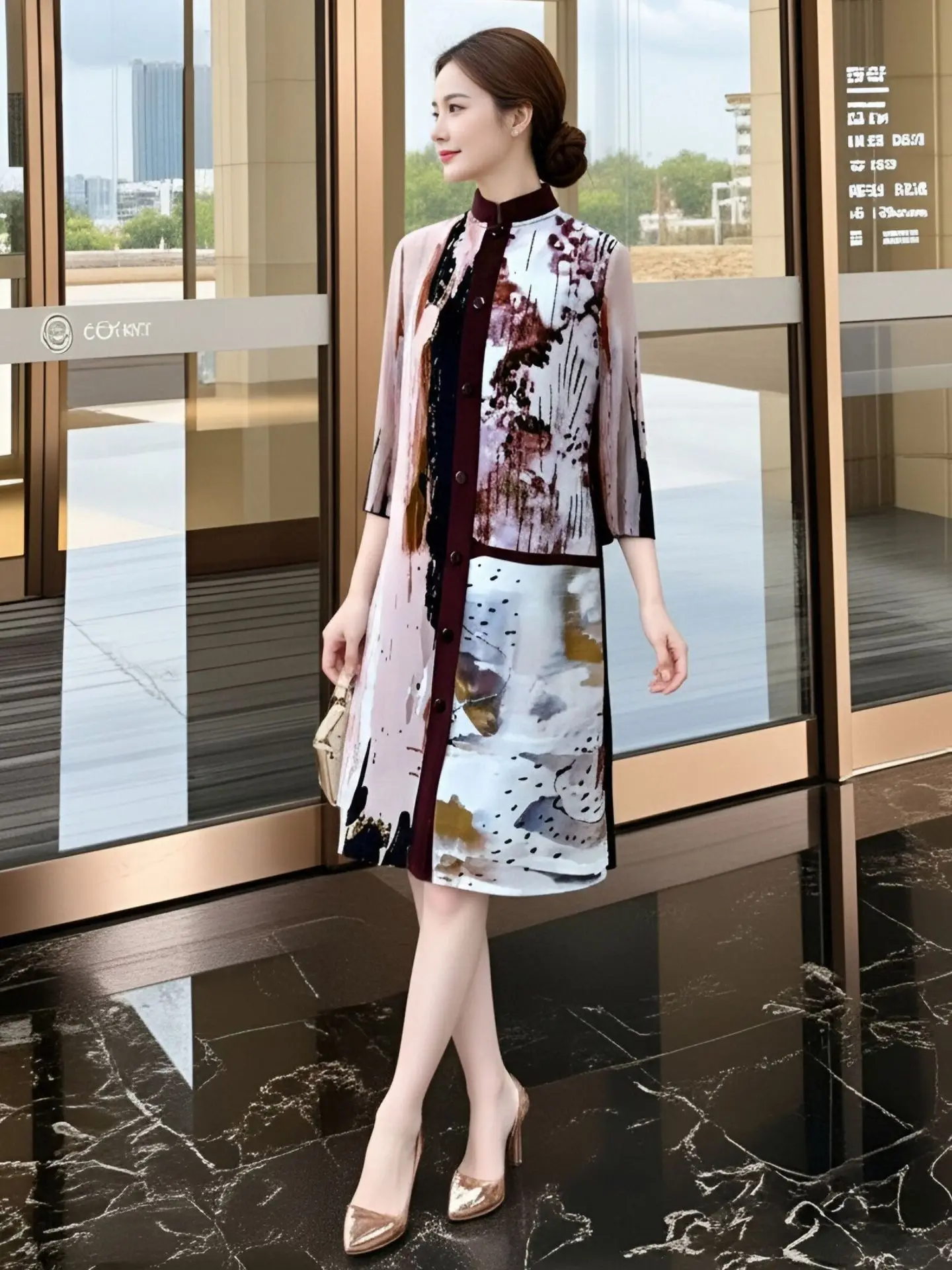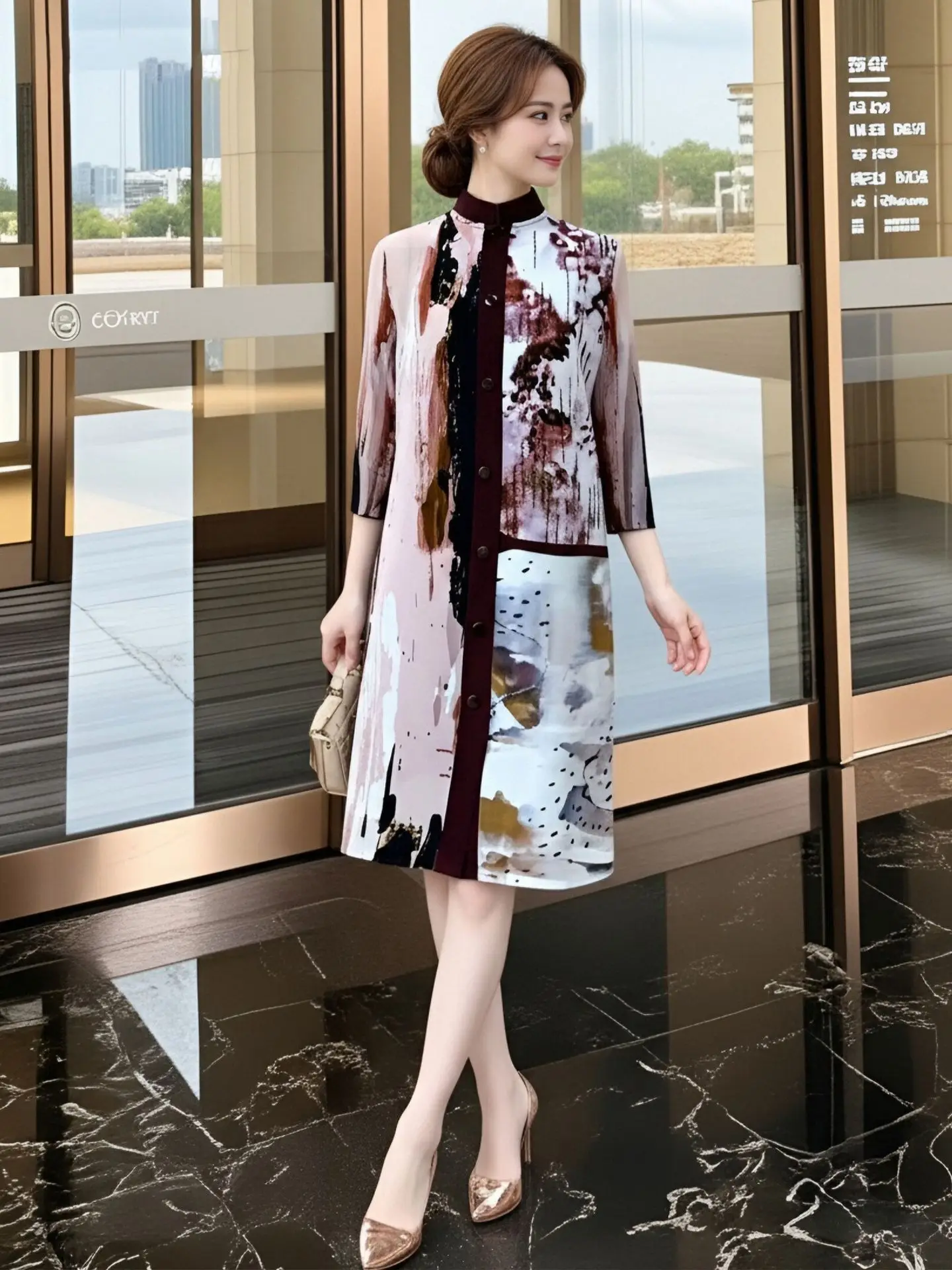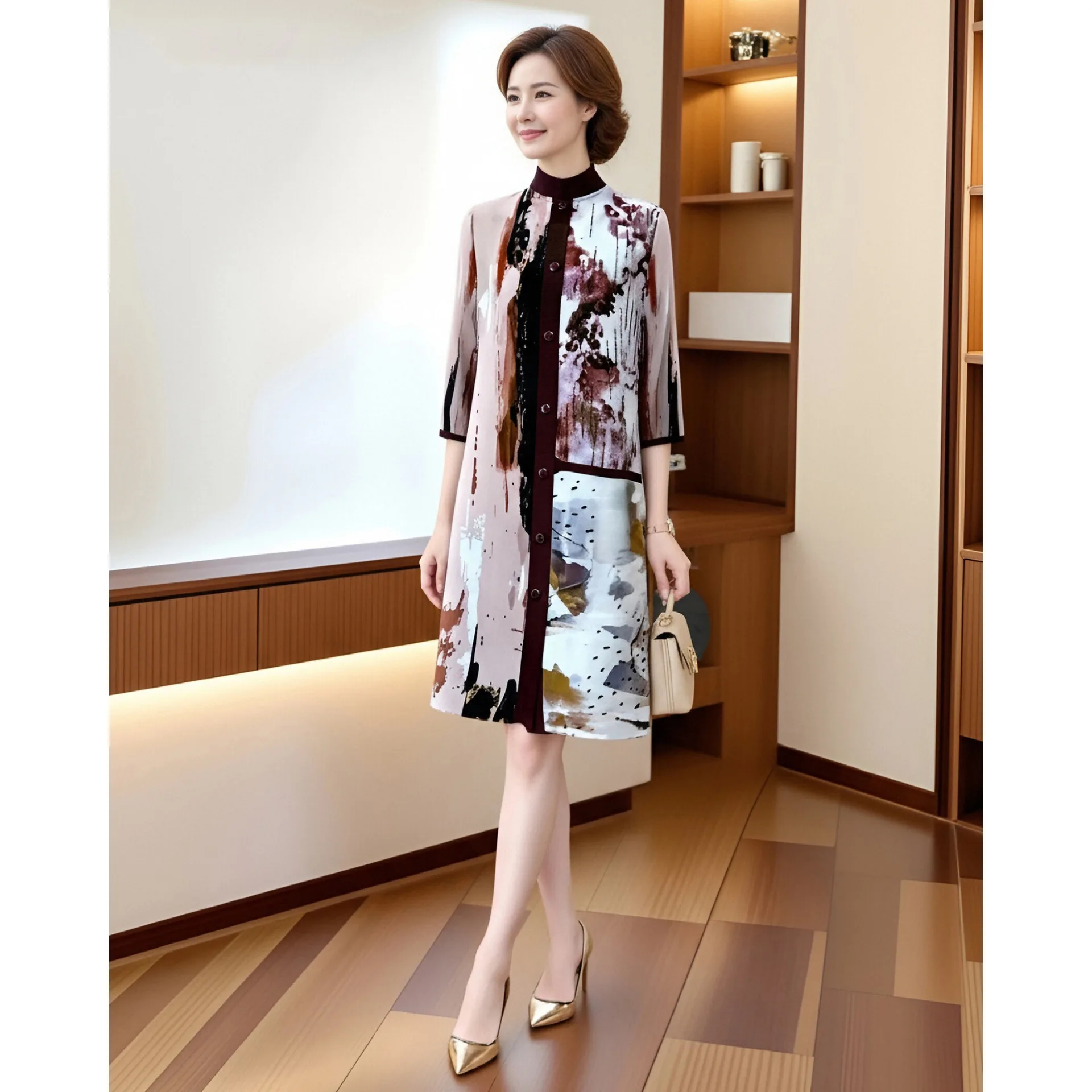 Mother Dress Age-reducing Vintage Miyake Pleated Loose Medium Length Anti-Static Spring 2026 New Middle-aged Elderly Women