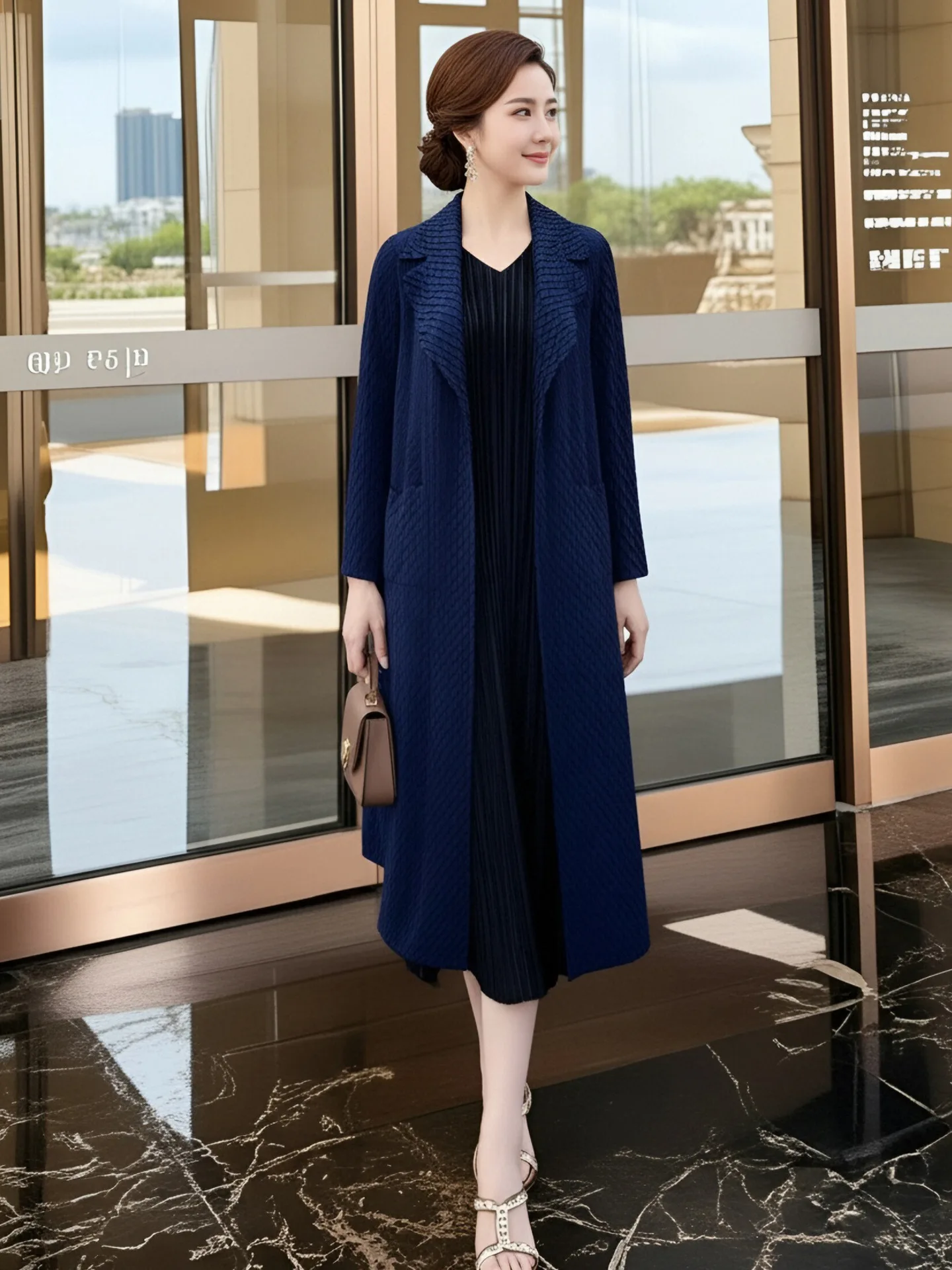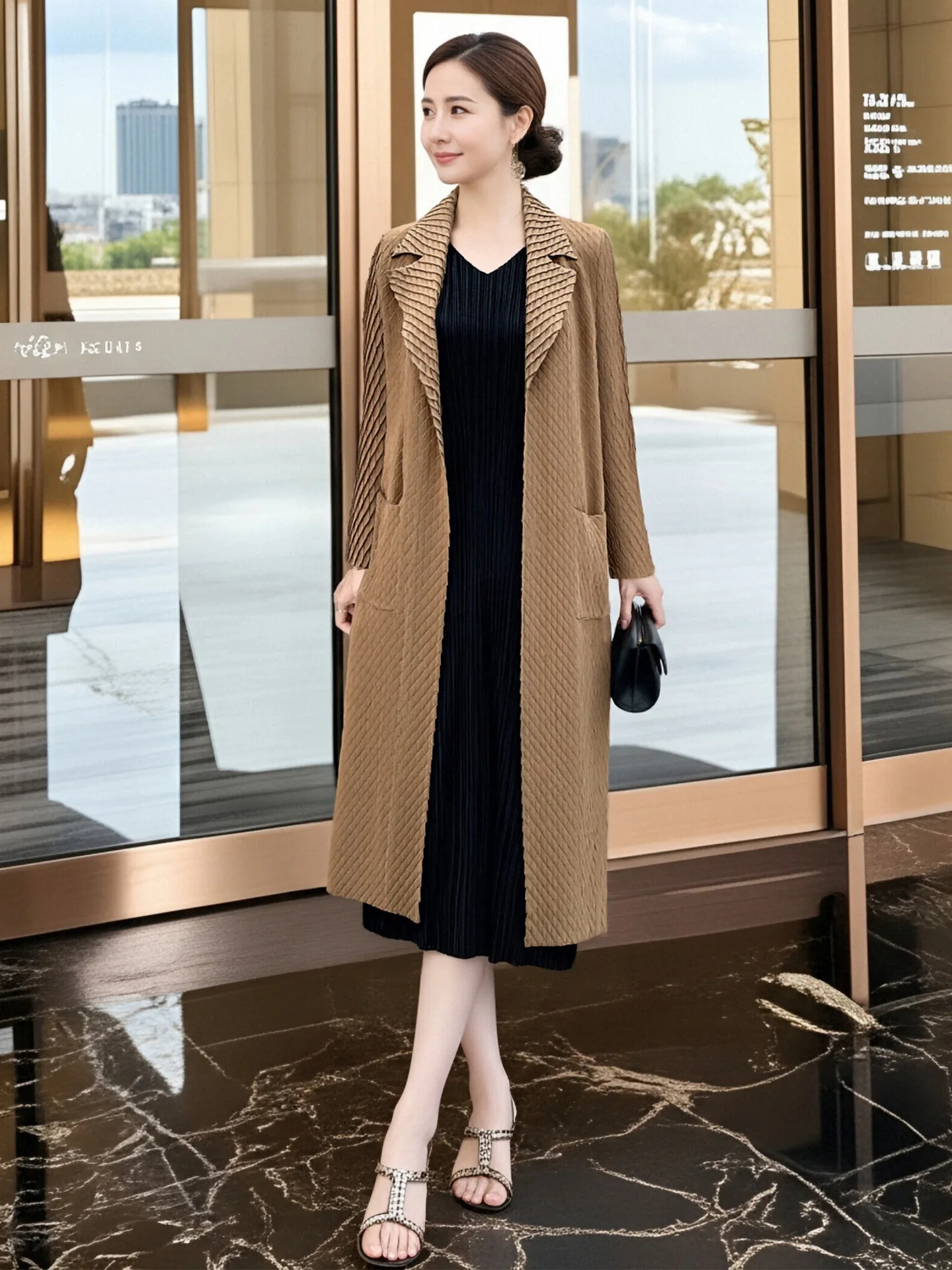 Khaki Vintage Thin Poncho Women's 2026 New Winter Three House Pleated High-end Atmospheric Black Mid-length Coat