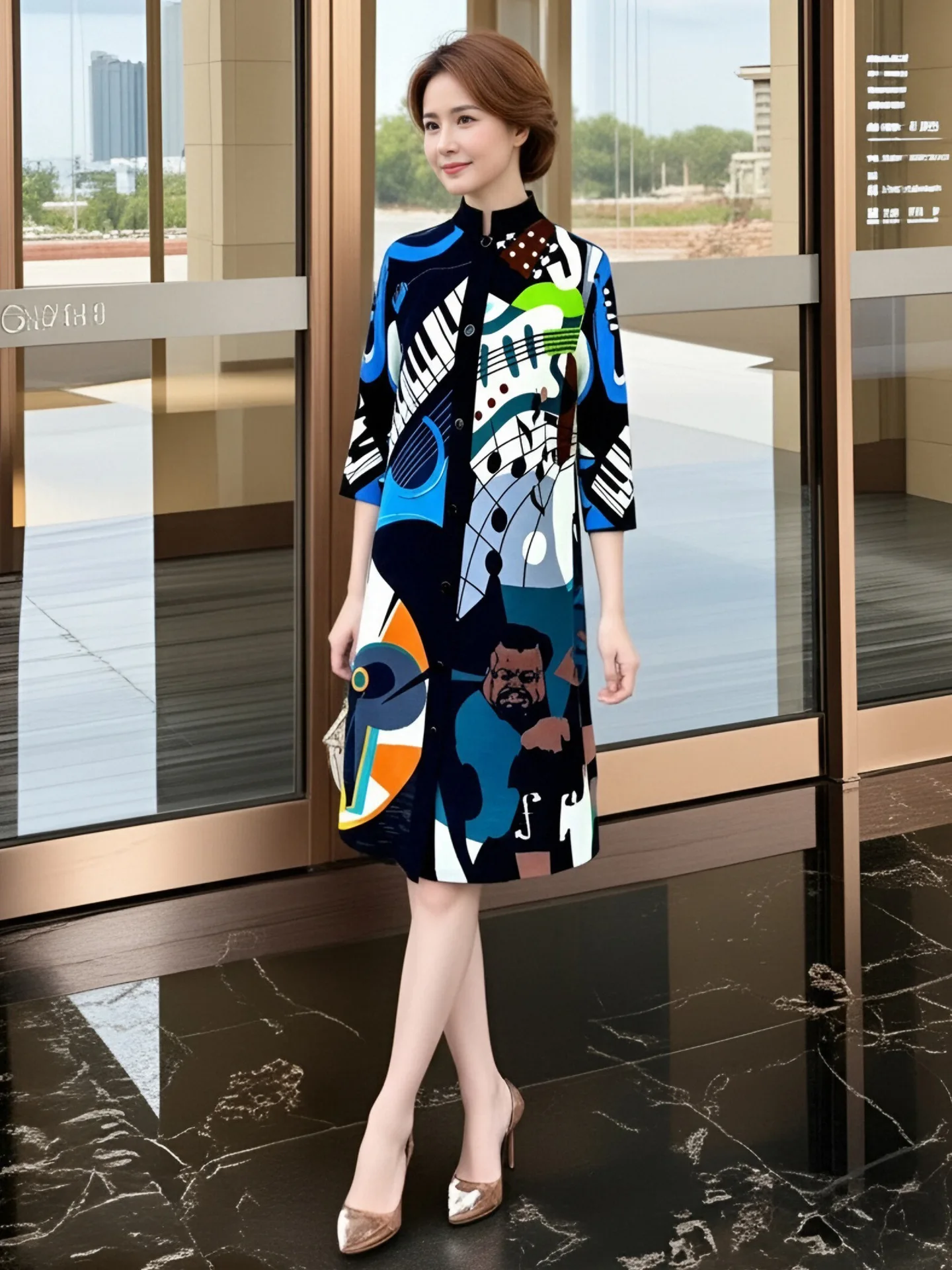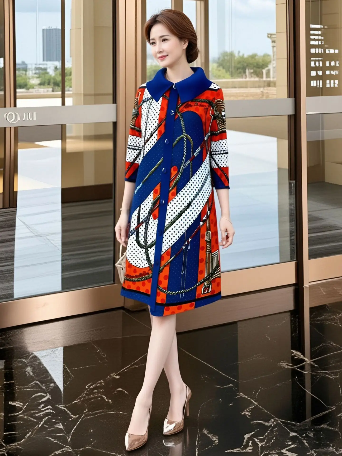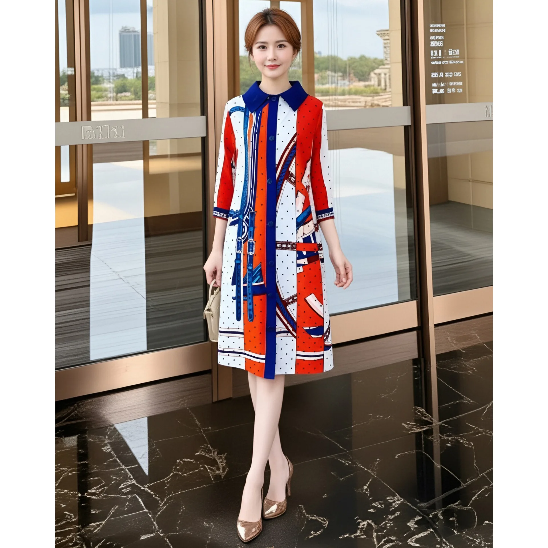 Middle-aged Mom Anti-Static Polyester Vintage Printed Dress 2026 New Spring Women's Miyake Large Size Loose Pleated