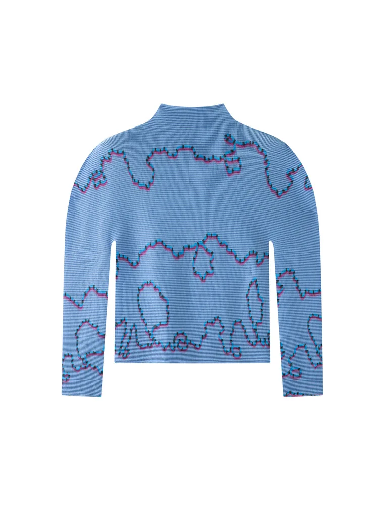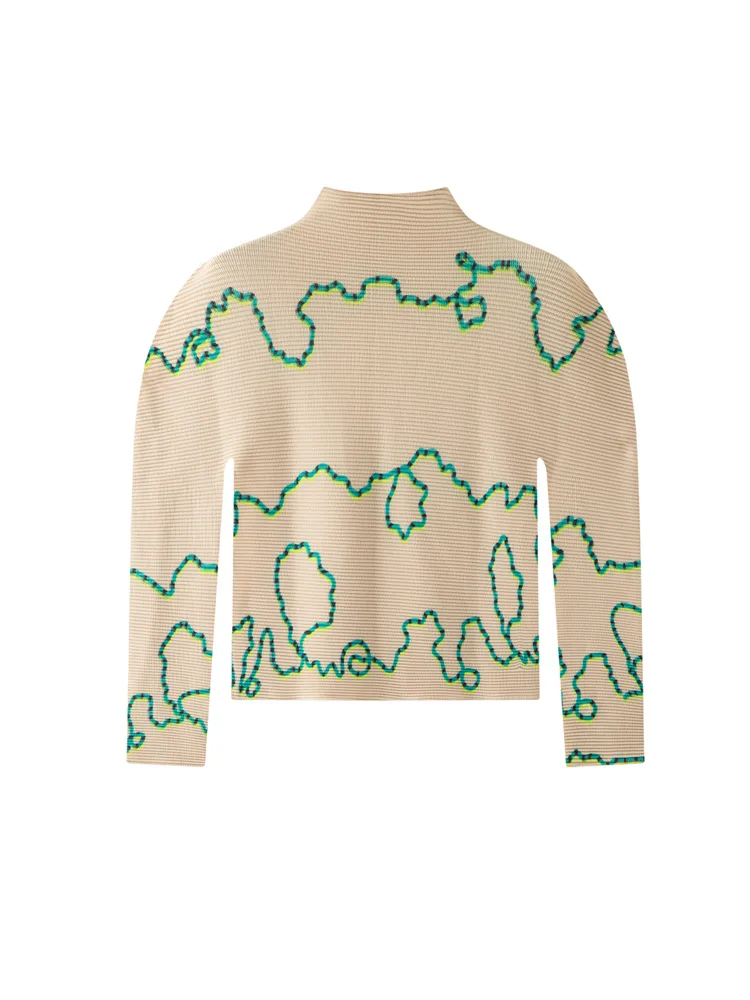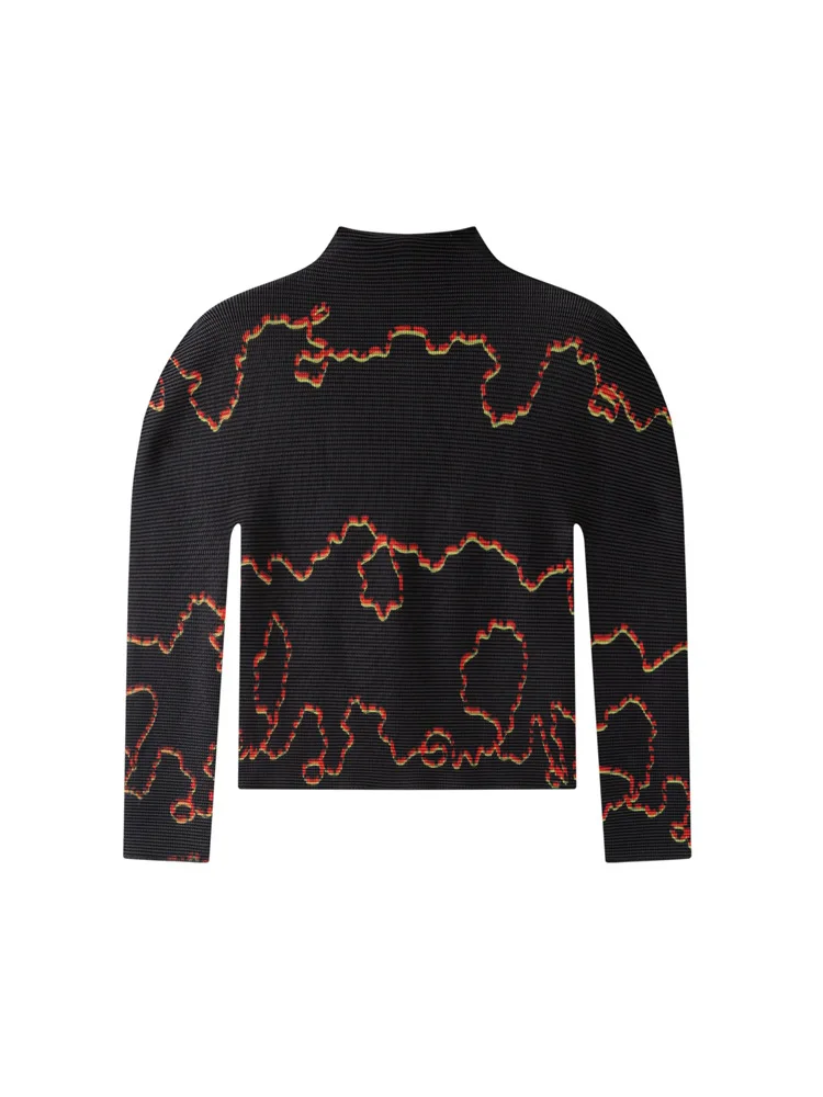 Miyake Abstract Contrast Color Lines Corn Grain Pleated Long-sleeved T-shirt New Japanese Style Design Crewneck Slim Polyester