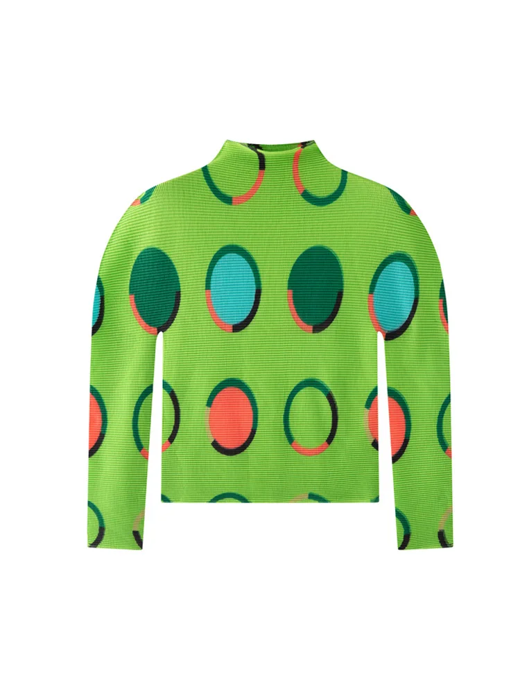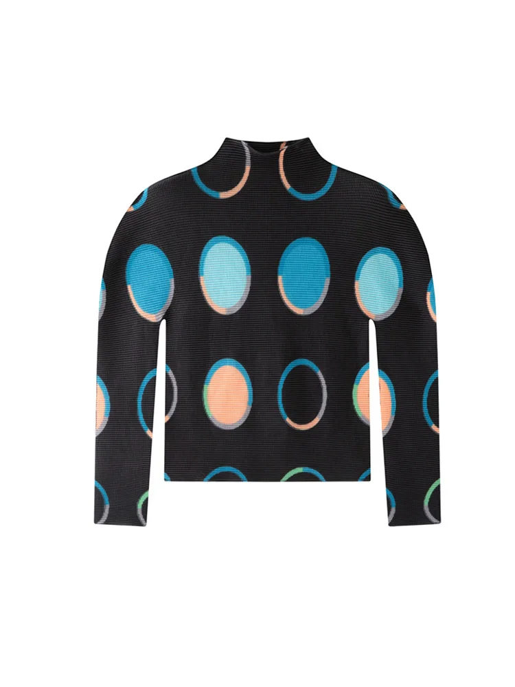 Miyake High-end Cute Pleated Mandarin Collar Top Women's 2026 New Elegant Slim-fit Long-sleeve Printed T-shirt Base Shirt