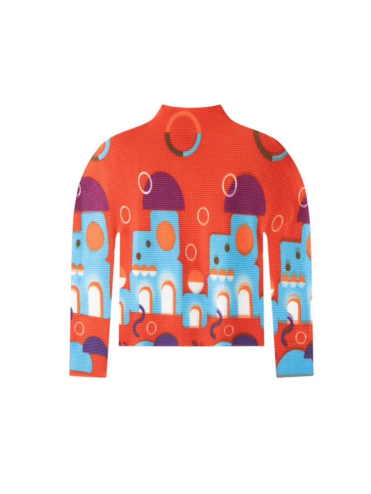 Miyake Elegant Commuter Long-sleeved Corn Grain Pleated Top Women's Spring New All-match Slim-fit Slimming Polyester T-shirt