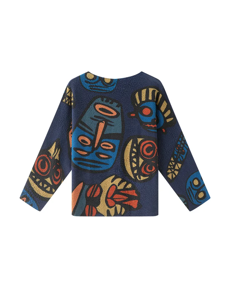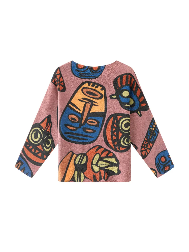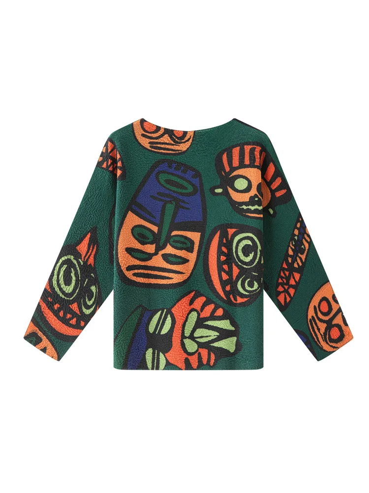 Miyake Style Autumn Polyester Pleated Print Long-sleeved Women's Loose Slimming Fashionable Stylish Meat Covering Age-reducing