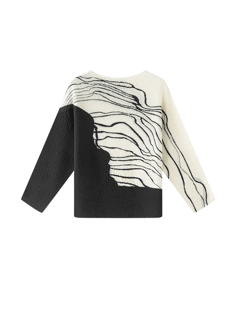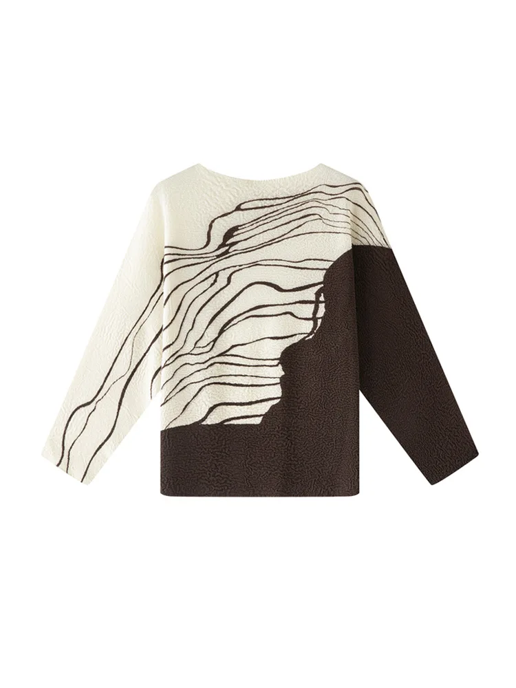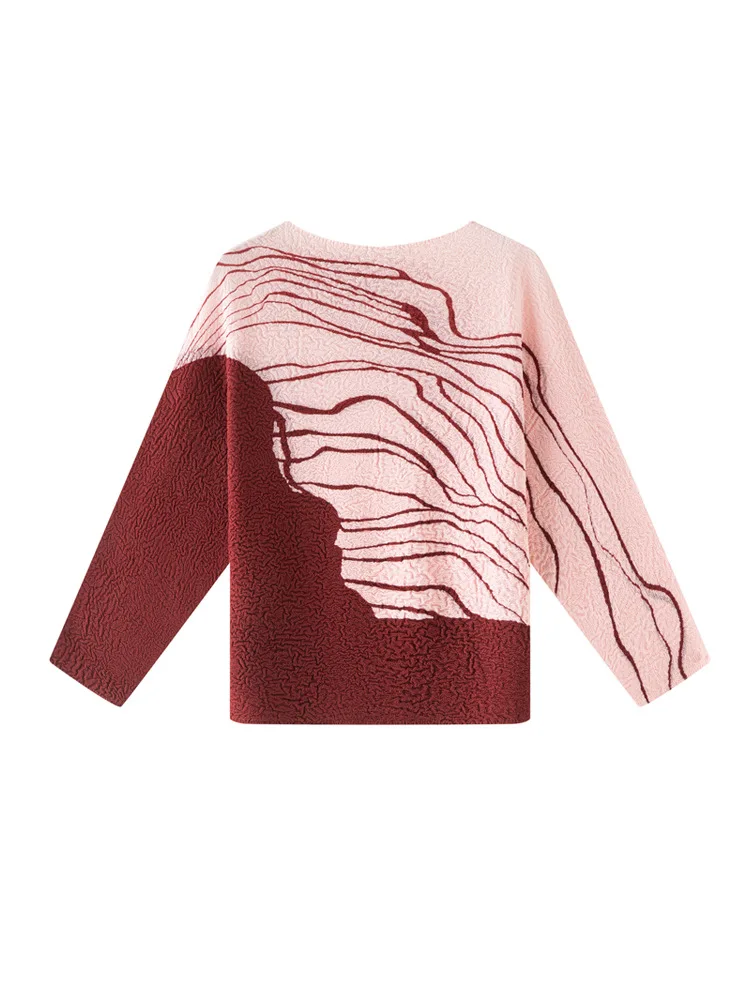 Miyake Design Sense Line Color Matching Long-sleeve T-shirt Loose Pullover Batwing Sleeve Large Size Versatile Top Cute Spring