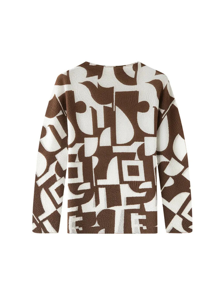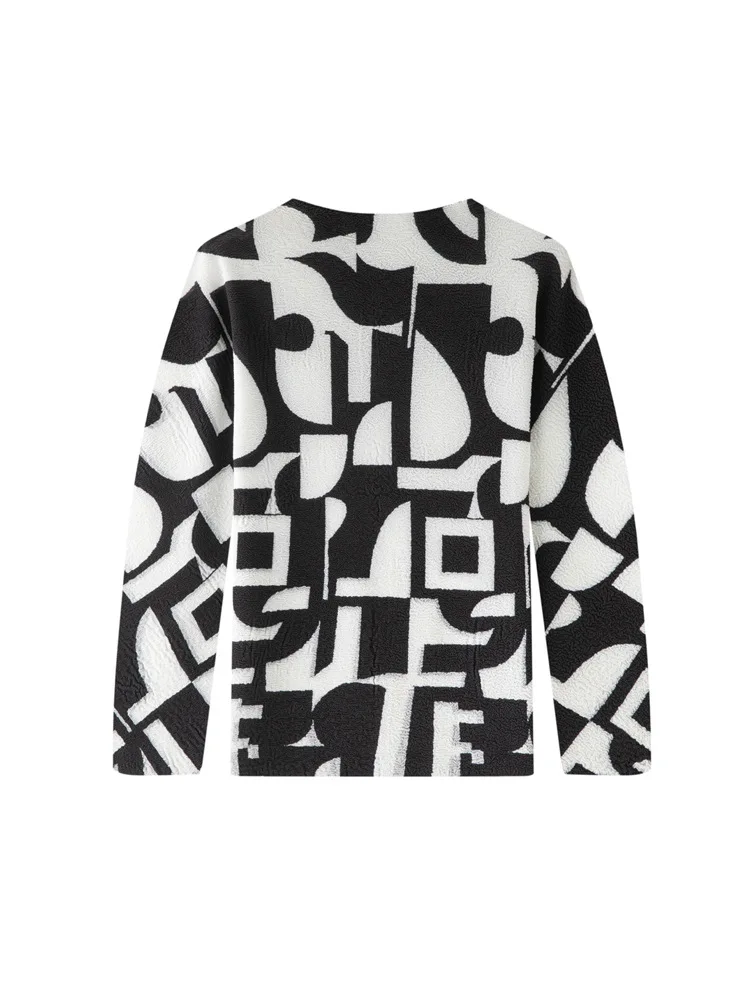 Miyake Spring New Arrival Cute Pleated Striped Long-Sleeved T-Shirt Women's Fashionable Loose Neck Mandarin Collar All-Match Top