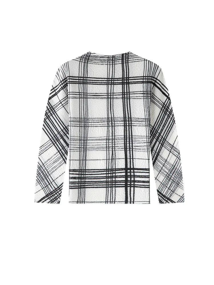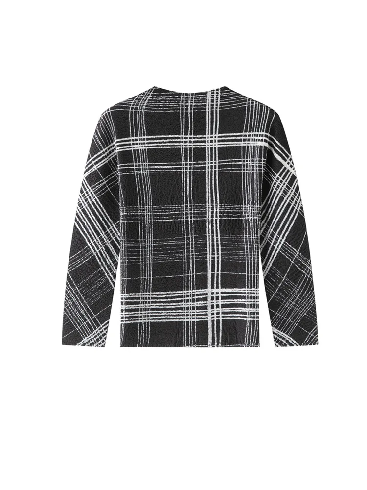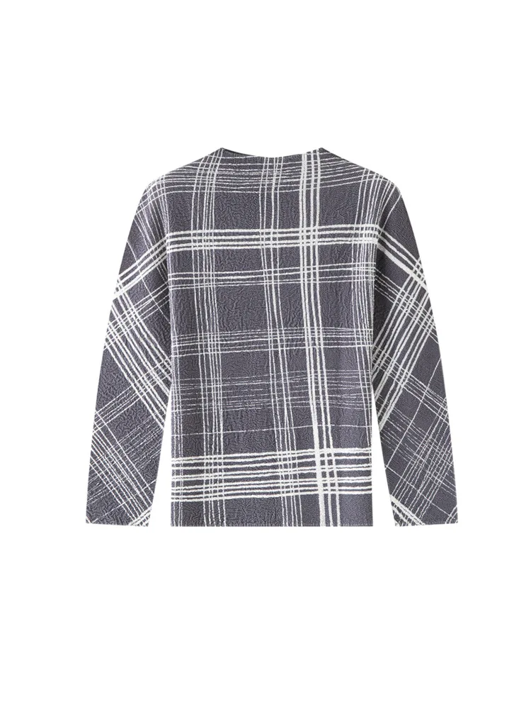 Miyake Spring Polyester Elegant Solid Color Crewneck Base Shirt Women's New Style Pleated Niche Design Long Sleeve T-shirt
