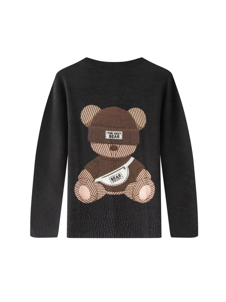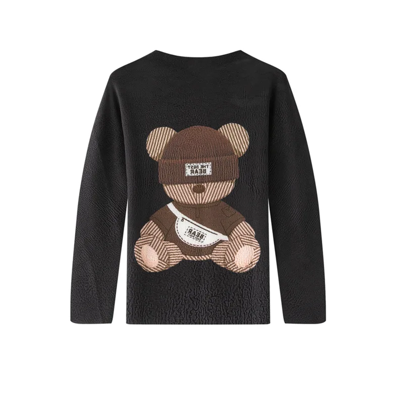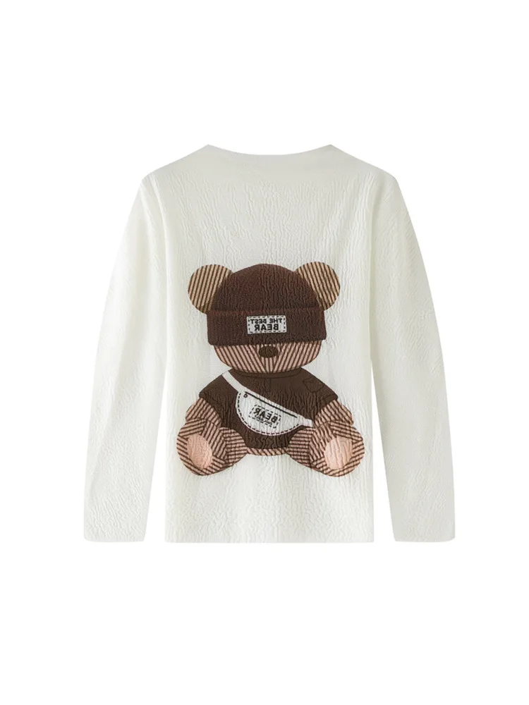 Miyake Polyester Pleated Printed Round Neck Long-sleeved T-Shirt Spring New Loose Slimming Casual Commuter Top