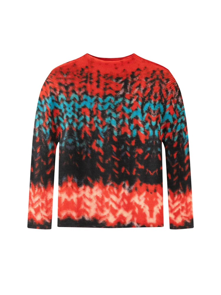 Miyake Japanese-style Cute Printed Half-turtleneck Long-sleeved Women's High-grade Pleated Stretch Slim-fit Slimming Autumn
