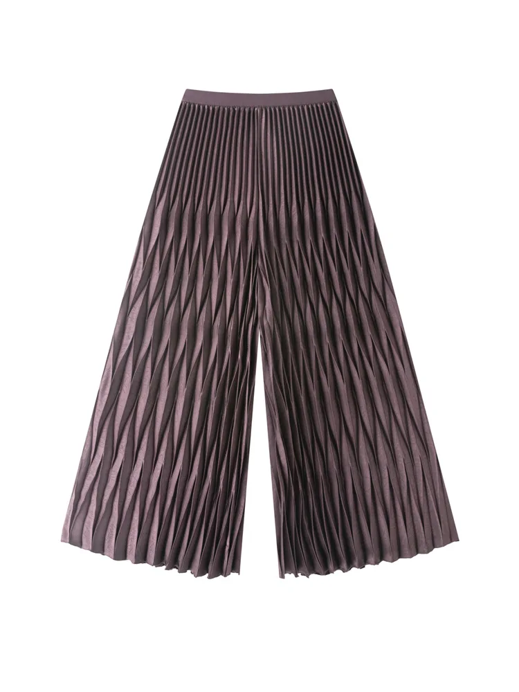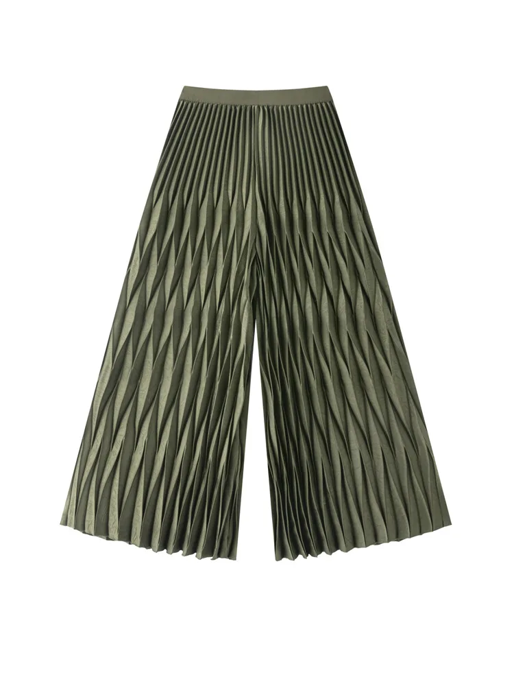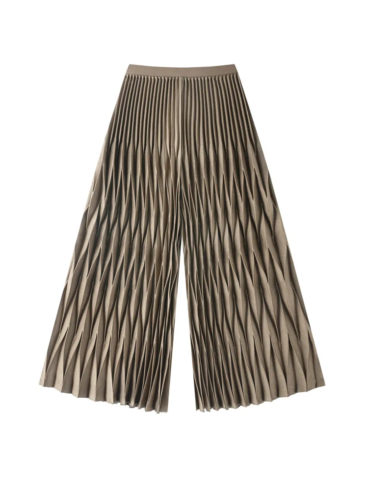 Miyake Vintage Handmade Paper Mold Pleated Wide Leg Pants Polyester Regular Fit Loose Casual Women's Trousers