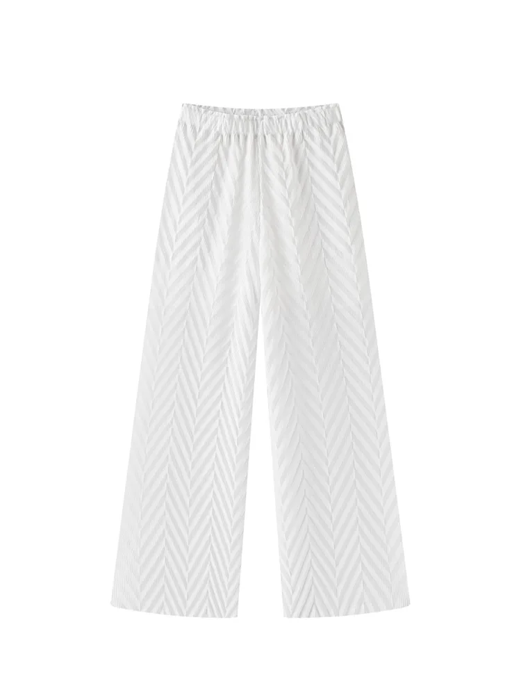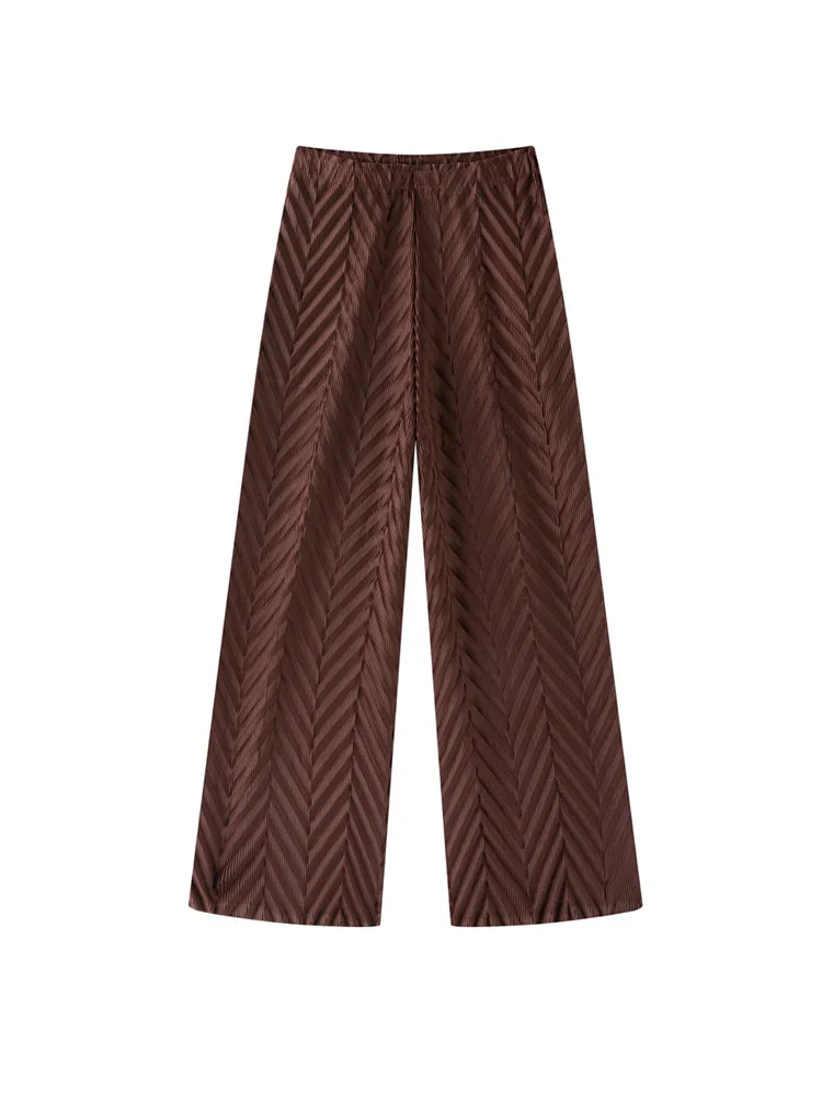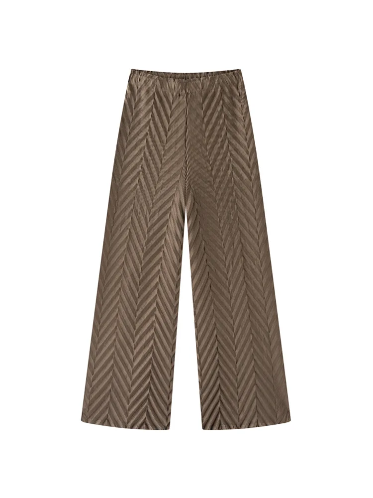 Miyake Handmade Vintage Pleated Pineapple Flower Spring Plaid Texture Fashion Boot Cut Pants All-match Casual Women