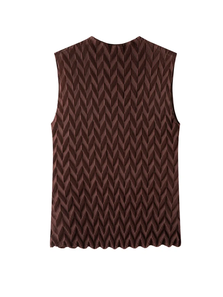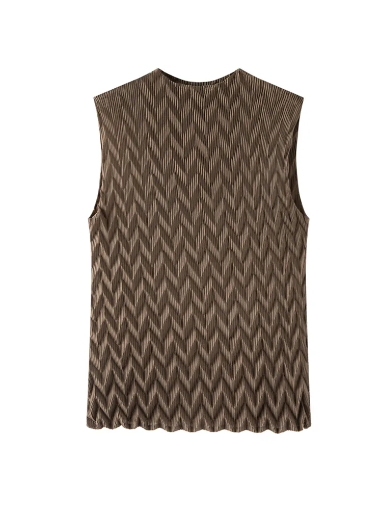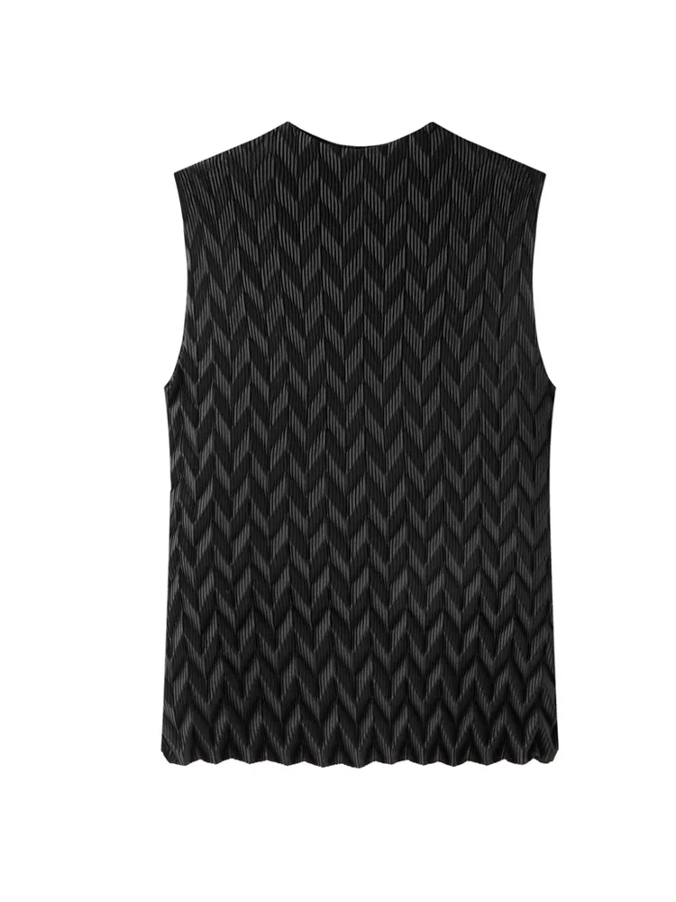 Miyake Fashion Vintage Bow Collar Elegant Pleated Sleeveless Women's T-shirt Base Shirt New Design