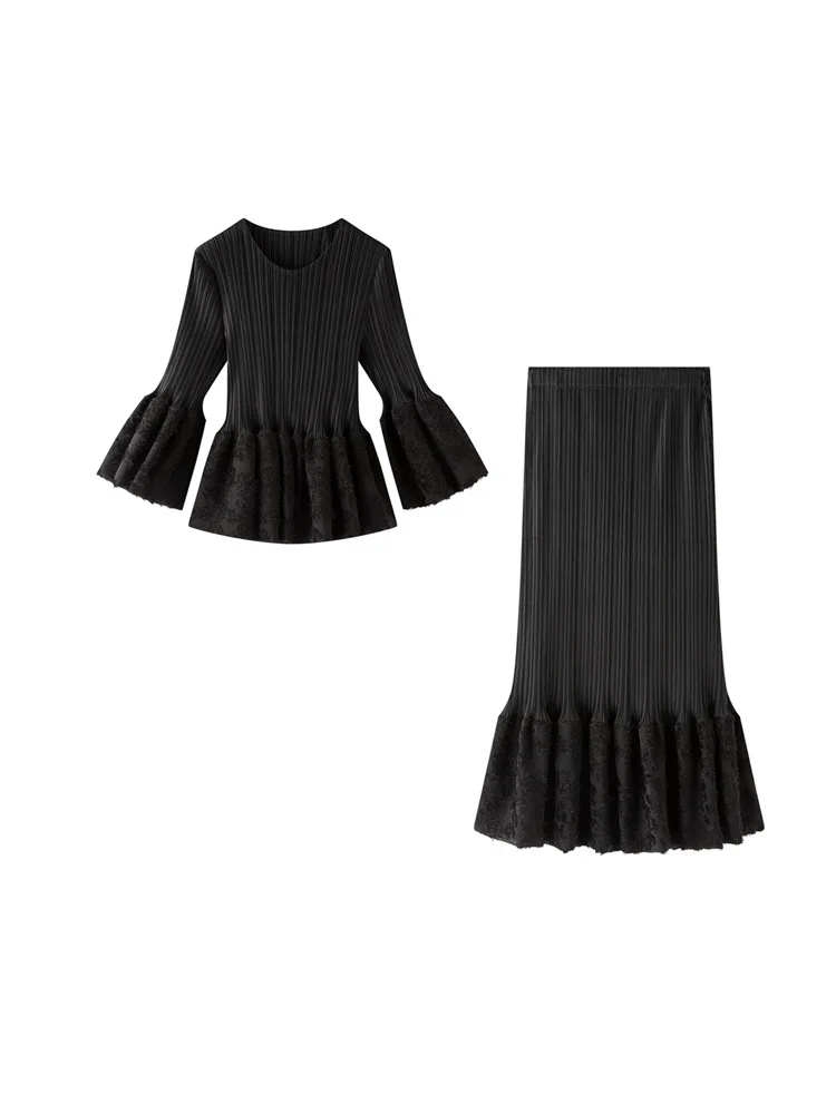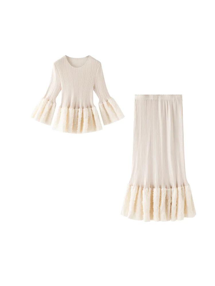 Miyake Solid Bow Pleated Suit Women's 2026 New Spring Autumn Long Sleeve Elegant Slimming Mid-length Mother Dress Western Style