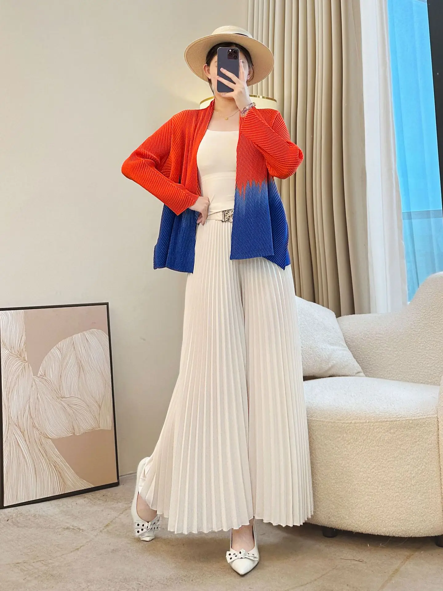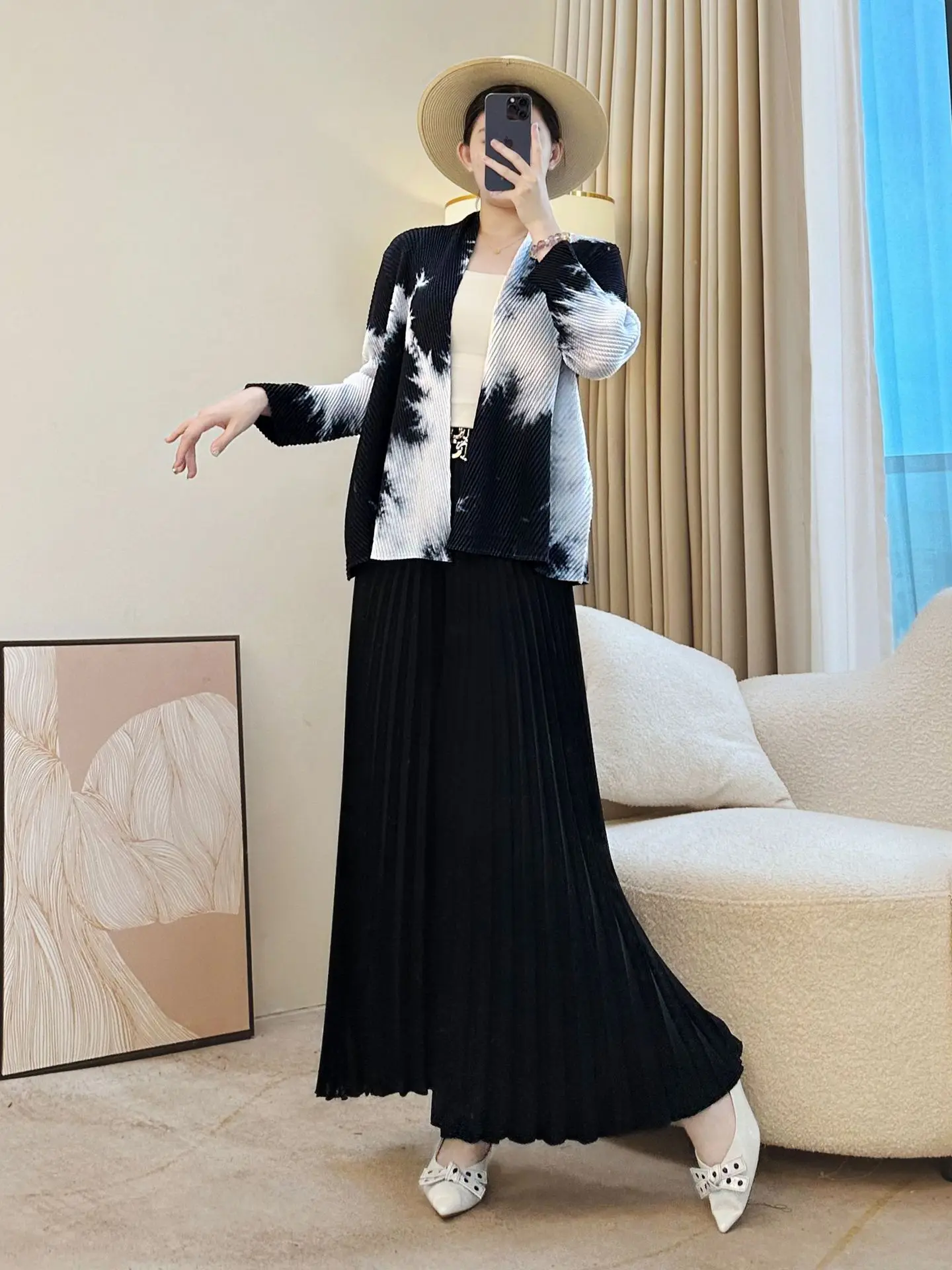 Miyake Elegant Breathable Pleated Coat Women's Autumn All-match Lapel Outer Draped Loose Casual High-end Cardigan Top Long