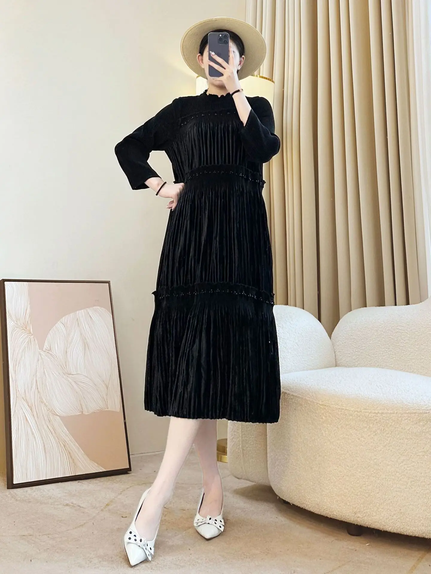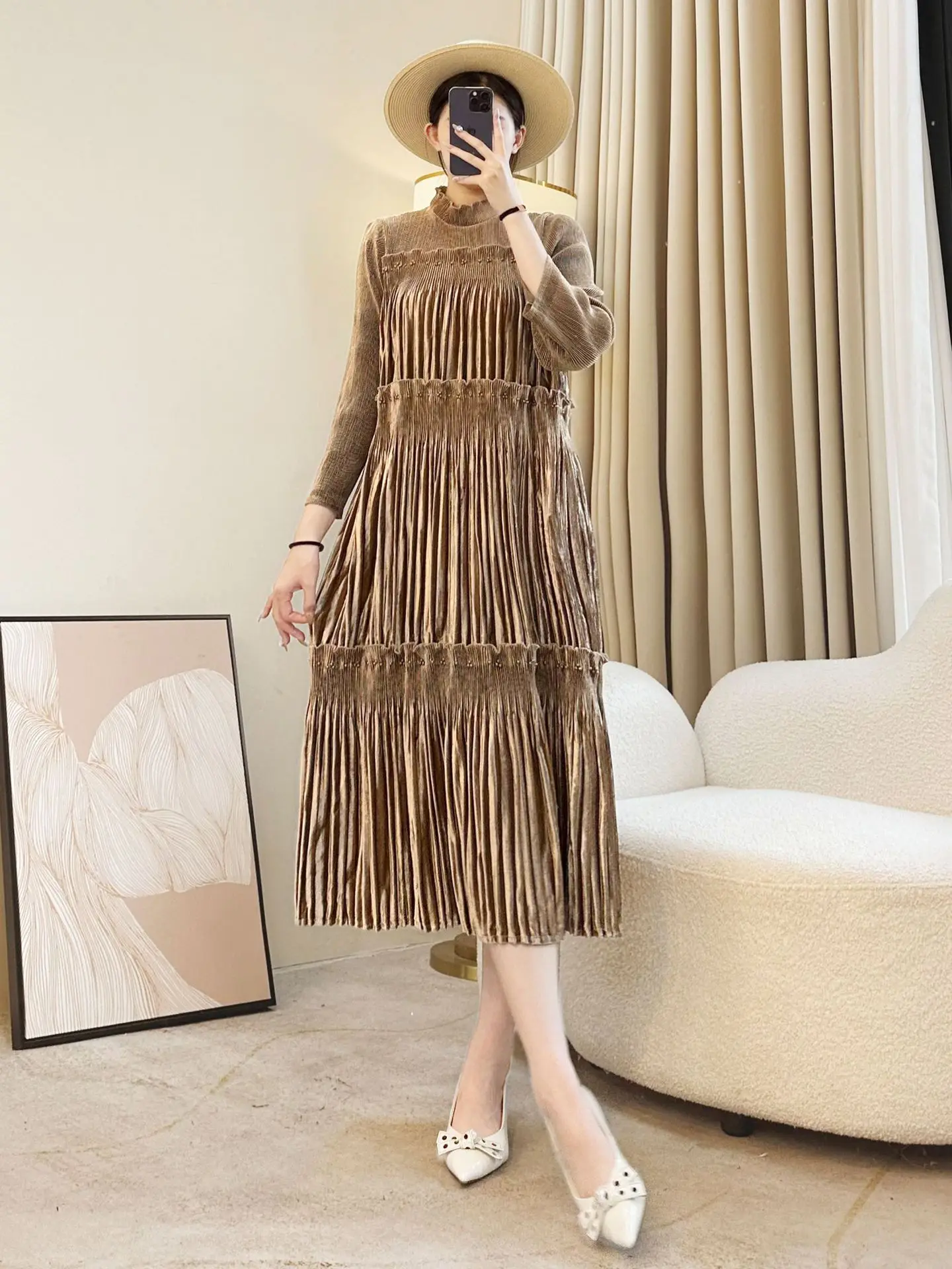 Real Velvet Casual Autumn 2026 New High-end Mother Banquet Floor-Length Khaki Dress with Digital Printing Washable