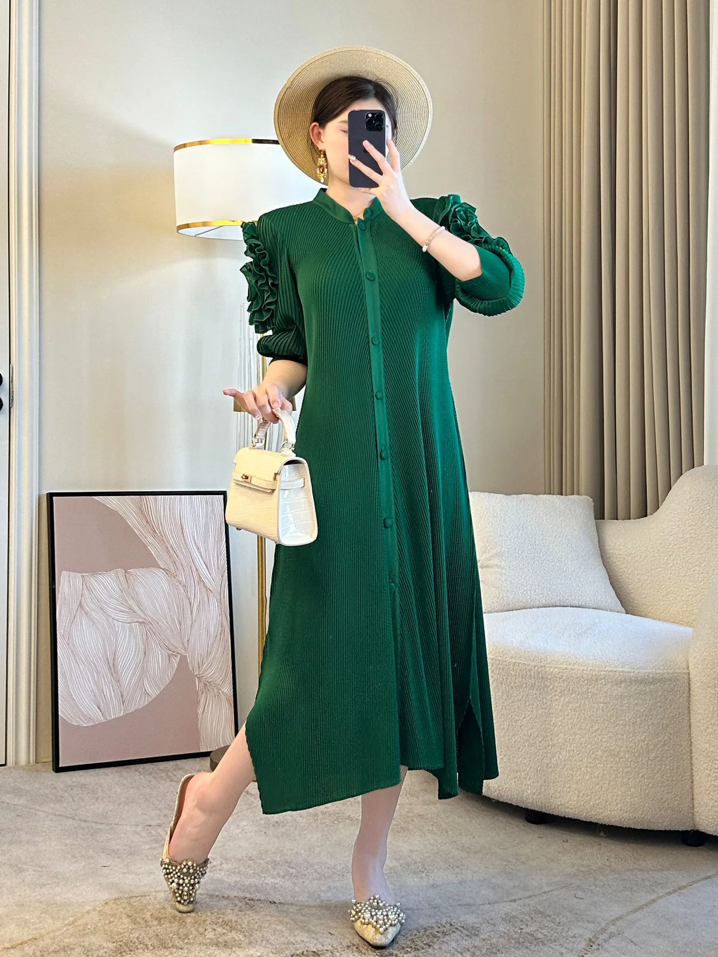 ZYHT 73902 Dark Green Blue Long Sleeve Simple Elegant Evening Dress Customize High End Women Clothing Manufacturer