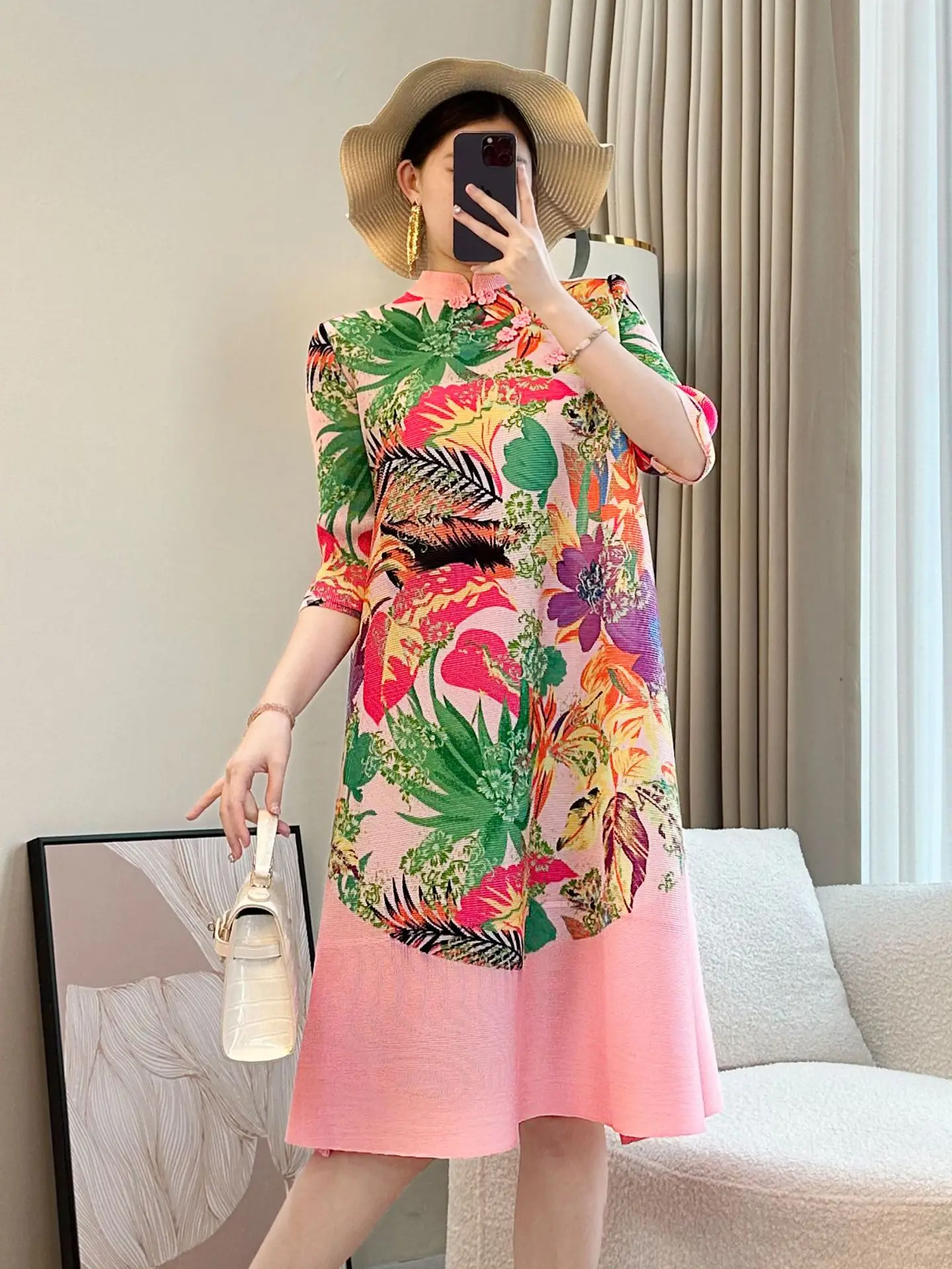 Elegant Chinese-Style New Large Size Dress for Spring Summer 2026 Age-Reducing A-Line Skirt Floral Pattern Empire for Fat Girls