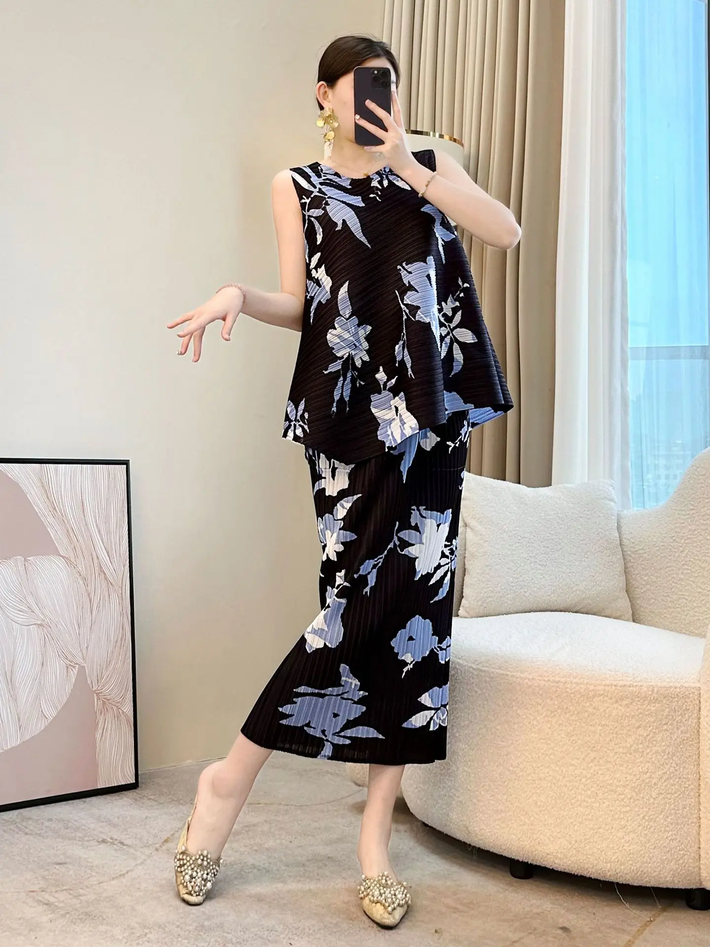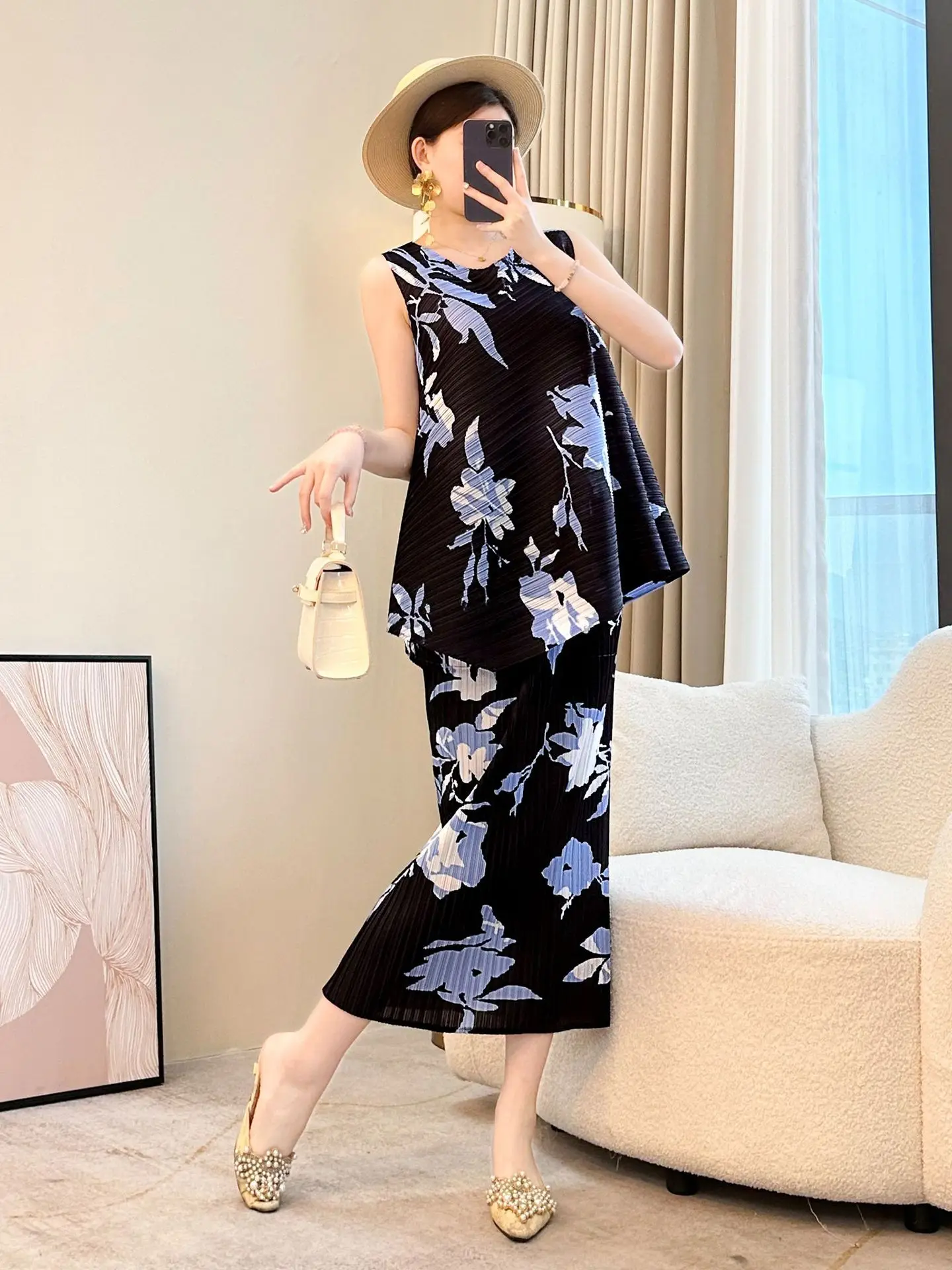 2026 Summer Elegant Floral Two-Piece Set for Women Casual Loose Top and Shorts Woven Pattern for Chubby Girls