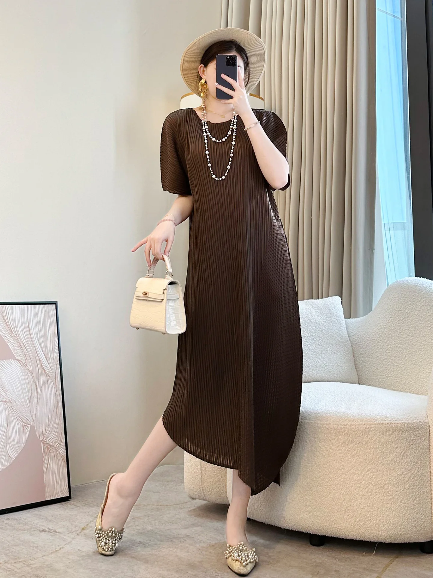 2026 Summer New Women's Elegant Casual Style Dress Seaside Holiday Irregular Long Short-Sleeved Woven Pattern Mother Fashion