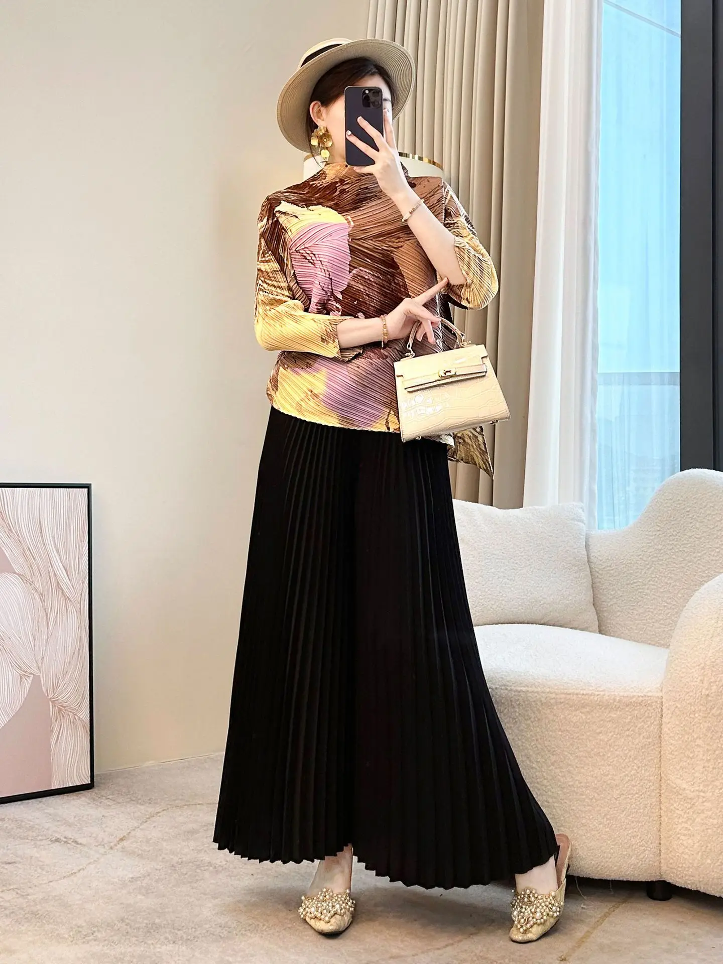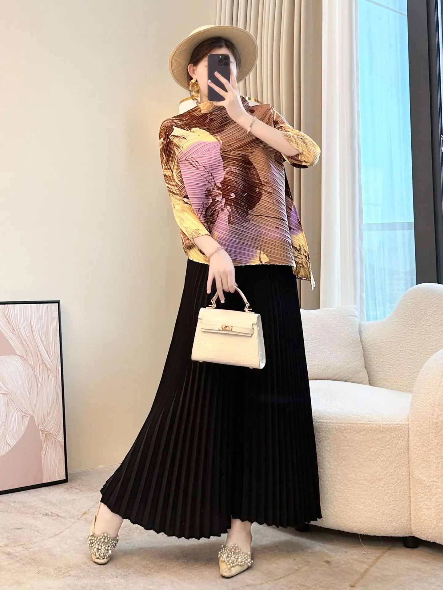 2026 Summer Female T-Shirt Casual Pleated Loose Fit Short Sleeve Printed Top Generational MM Size for Young Mothers
