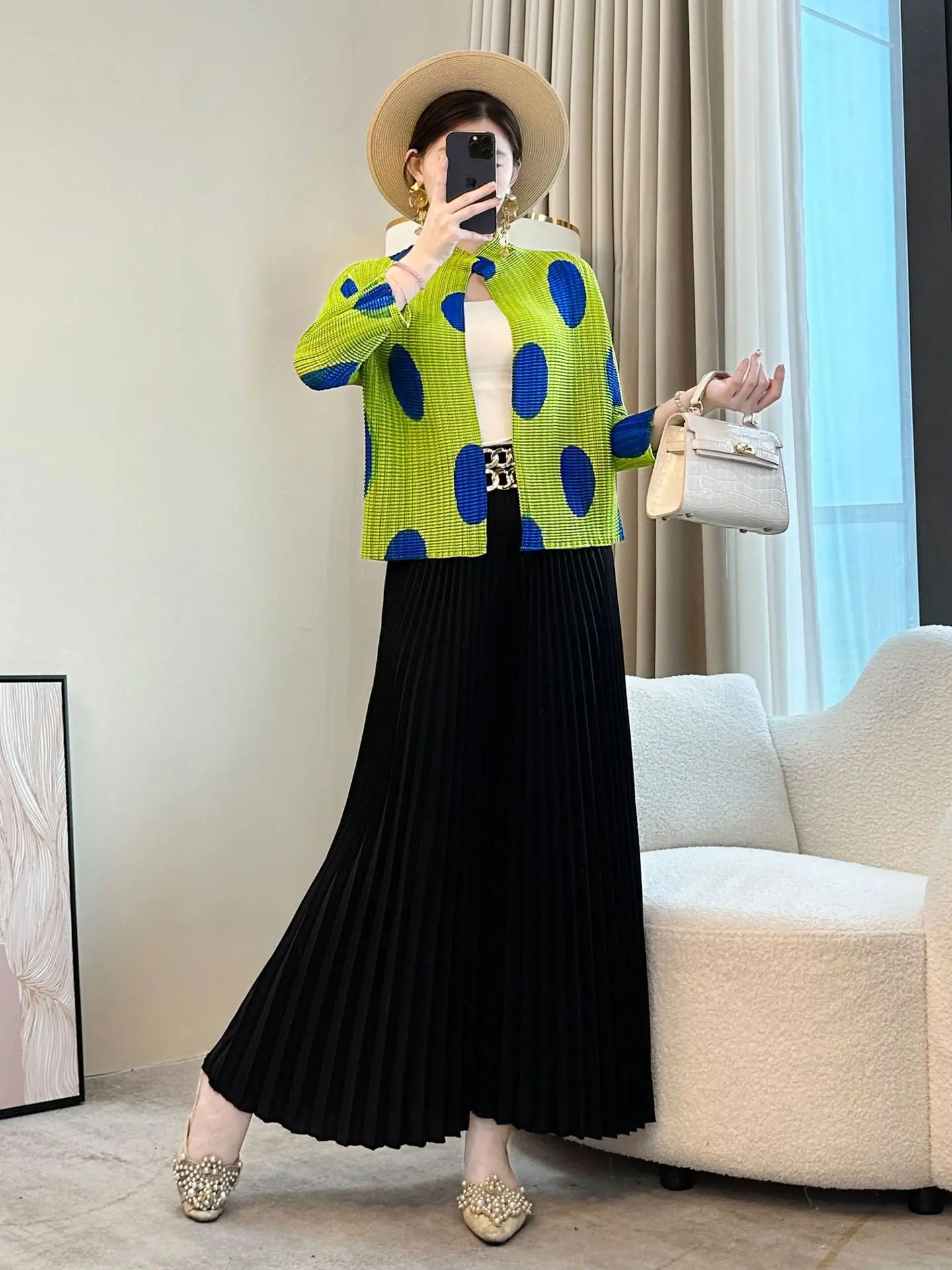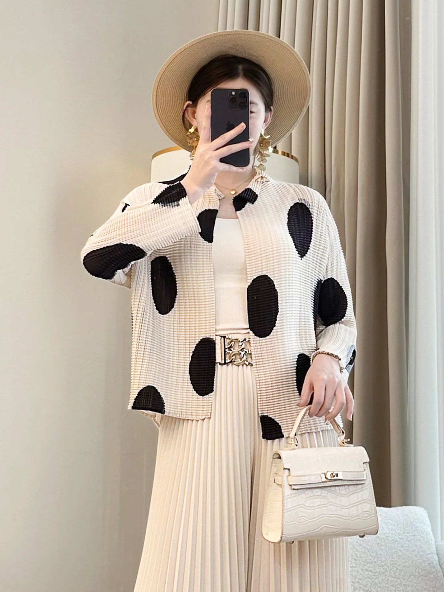 2026 Summer New Arrival Women's Large Size Fashionable All-Match Coat Thin Sunscreen Cardigan Polka Dot Pleated Top Long Length