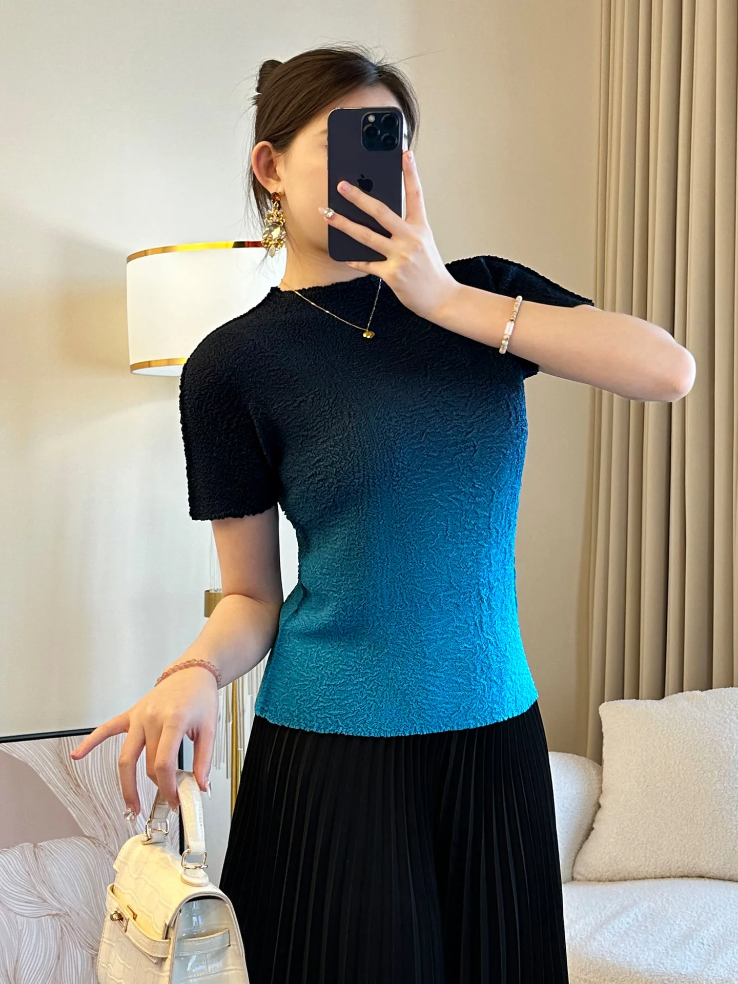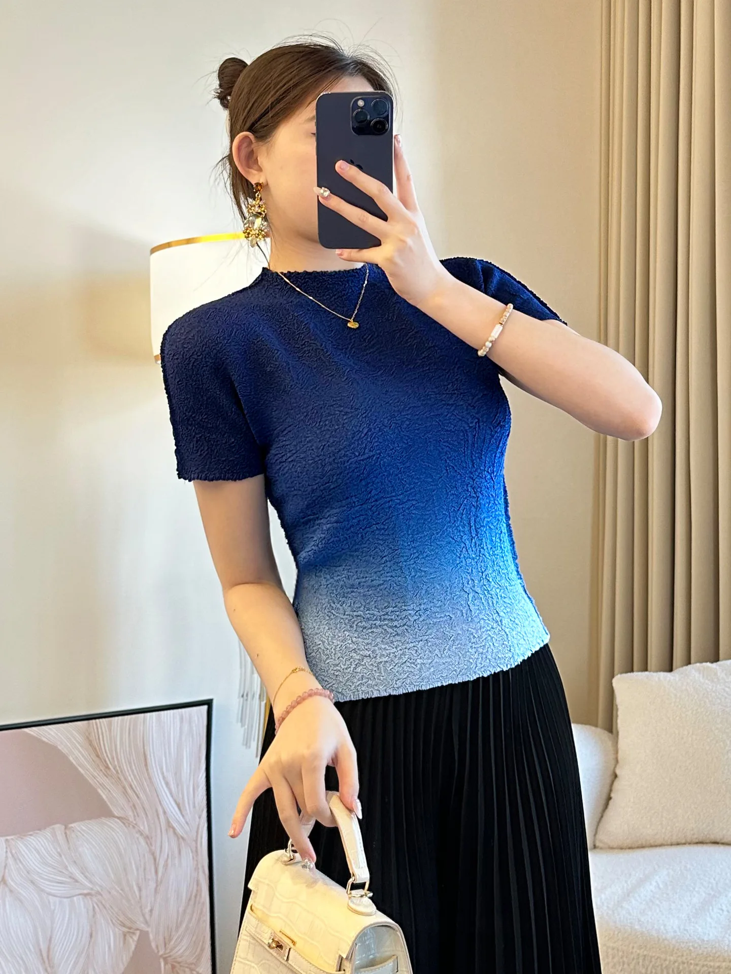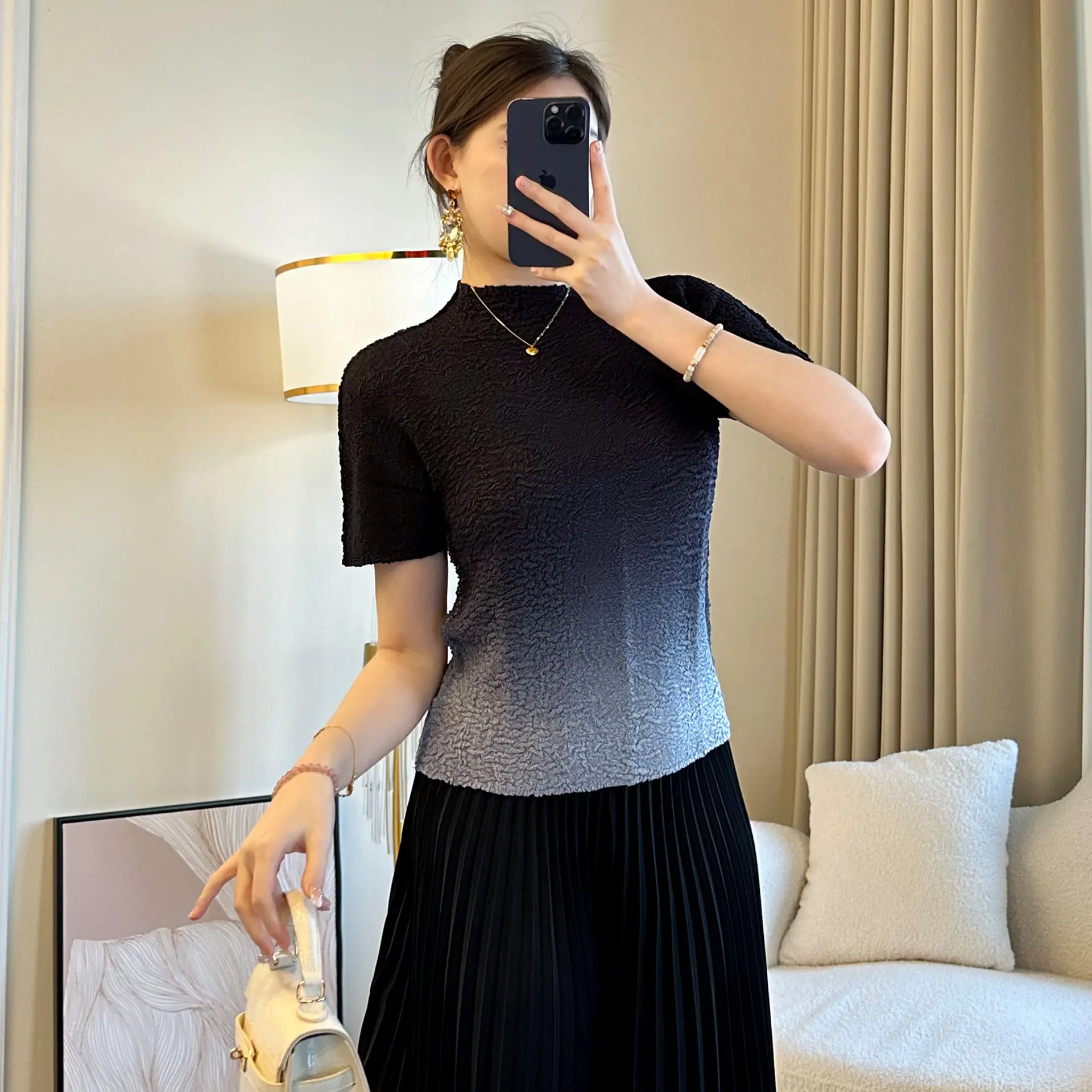 2026 Summer New Women's T-Shirt Foreign Style Casual Gradient Short Sleeve Loose Waist Jacket Generation Anti-Pilling Chiffon