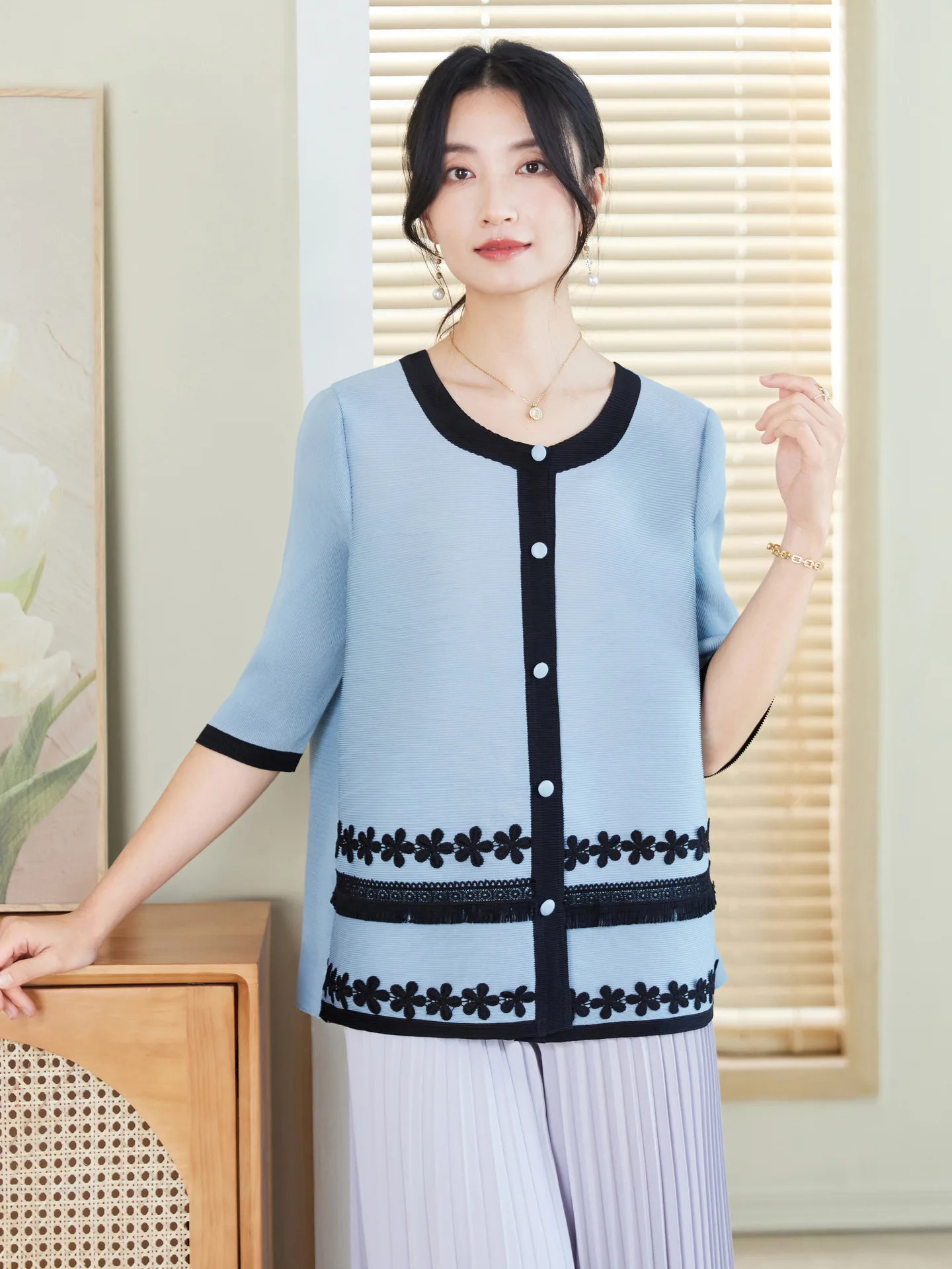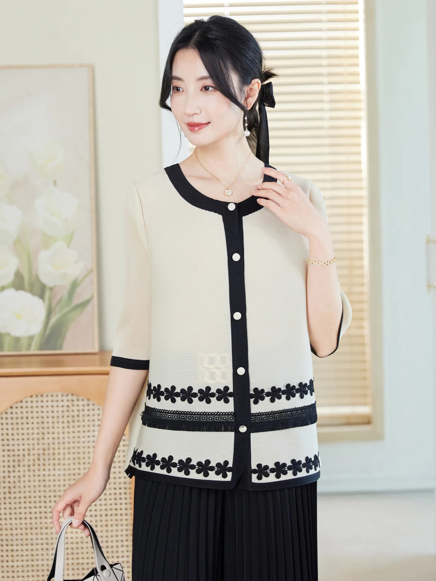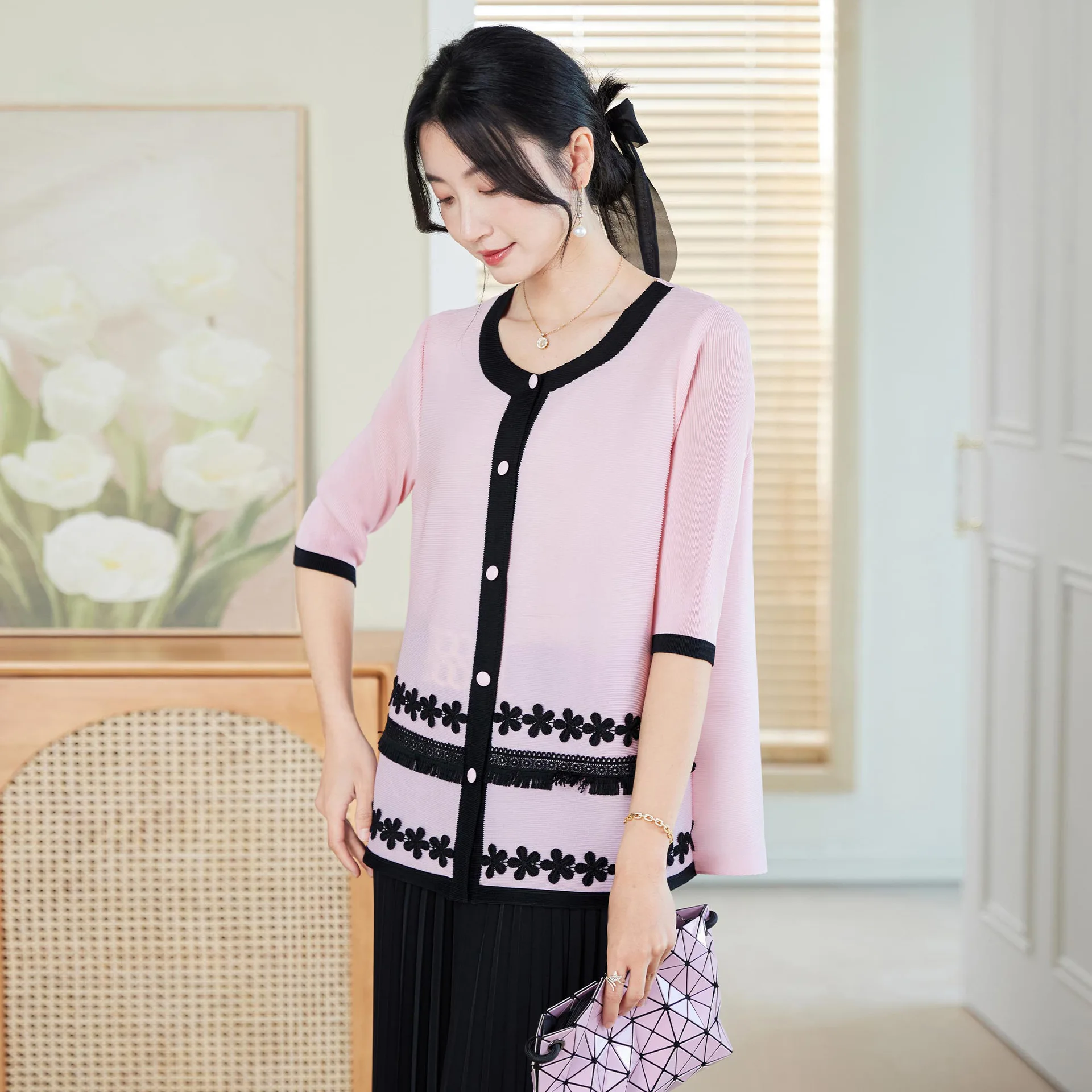 2026 Spring Summer Collection High-End Fashion Mother Coat Casual Solid Knitted Cardigan Age-Reducing Small Fragrance Neck