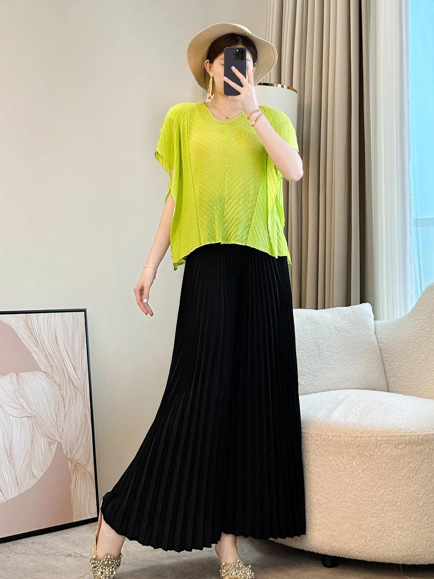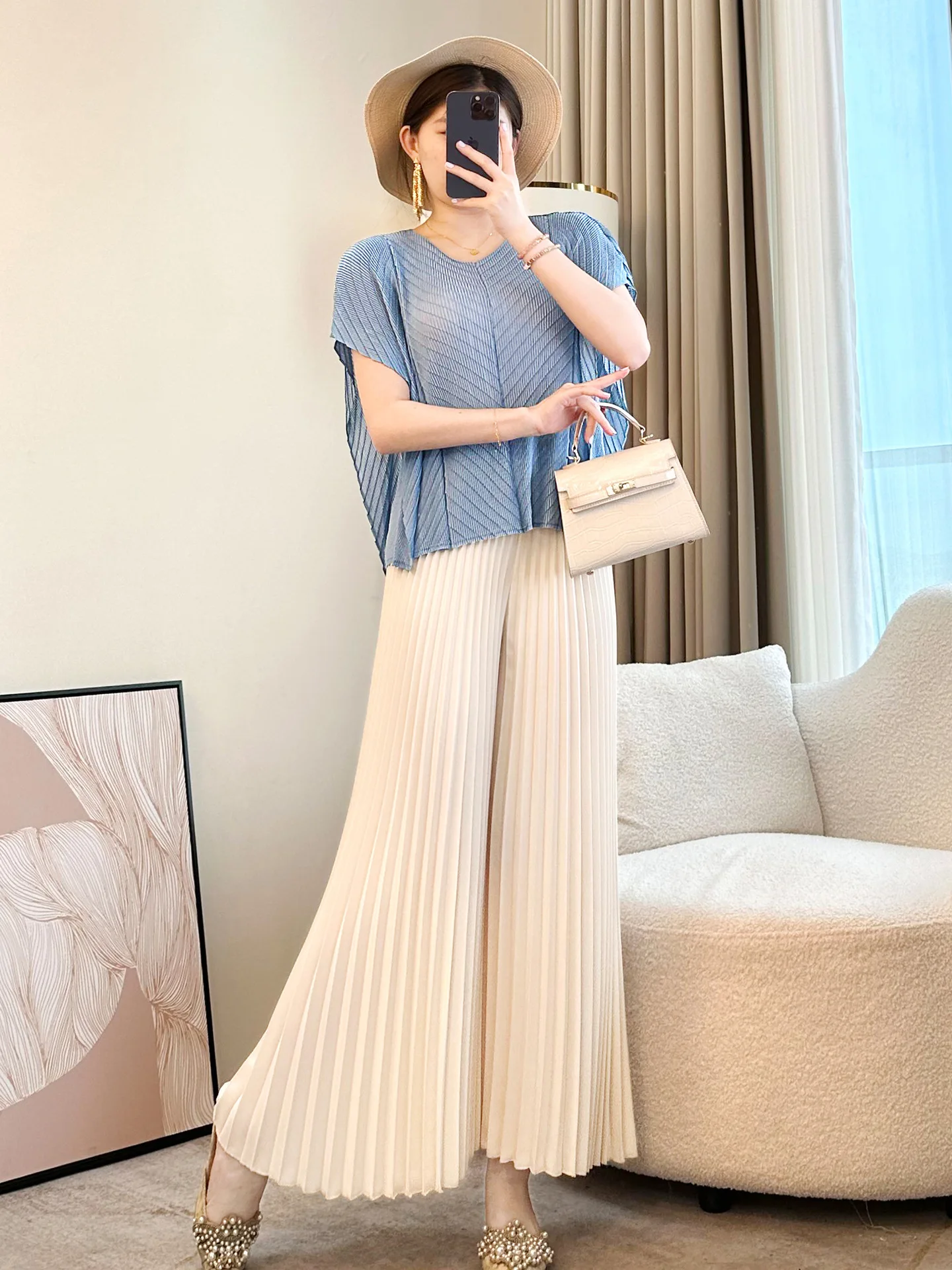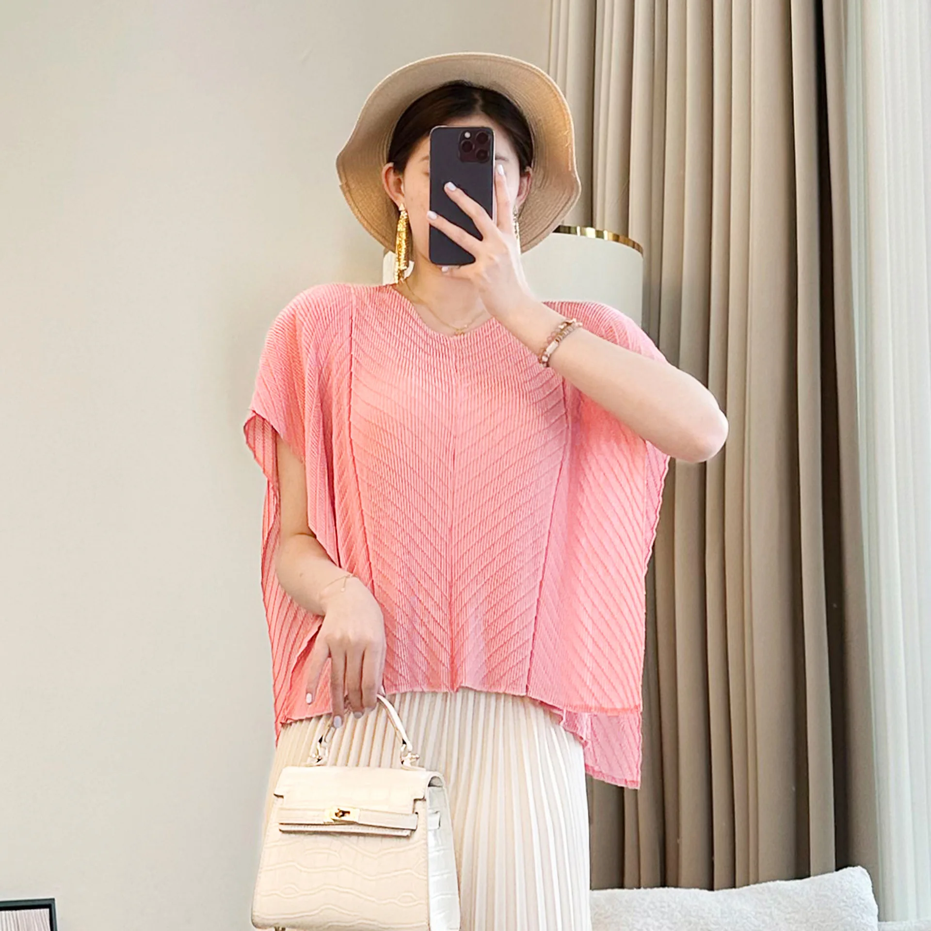 2026 Summer New Arrival Women's Foreign-Style Pink Pleated Age-Reducing Top Short-Sleeved T-Shirt Front Casual Slim-Fit Loose
