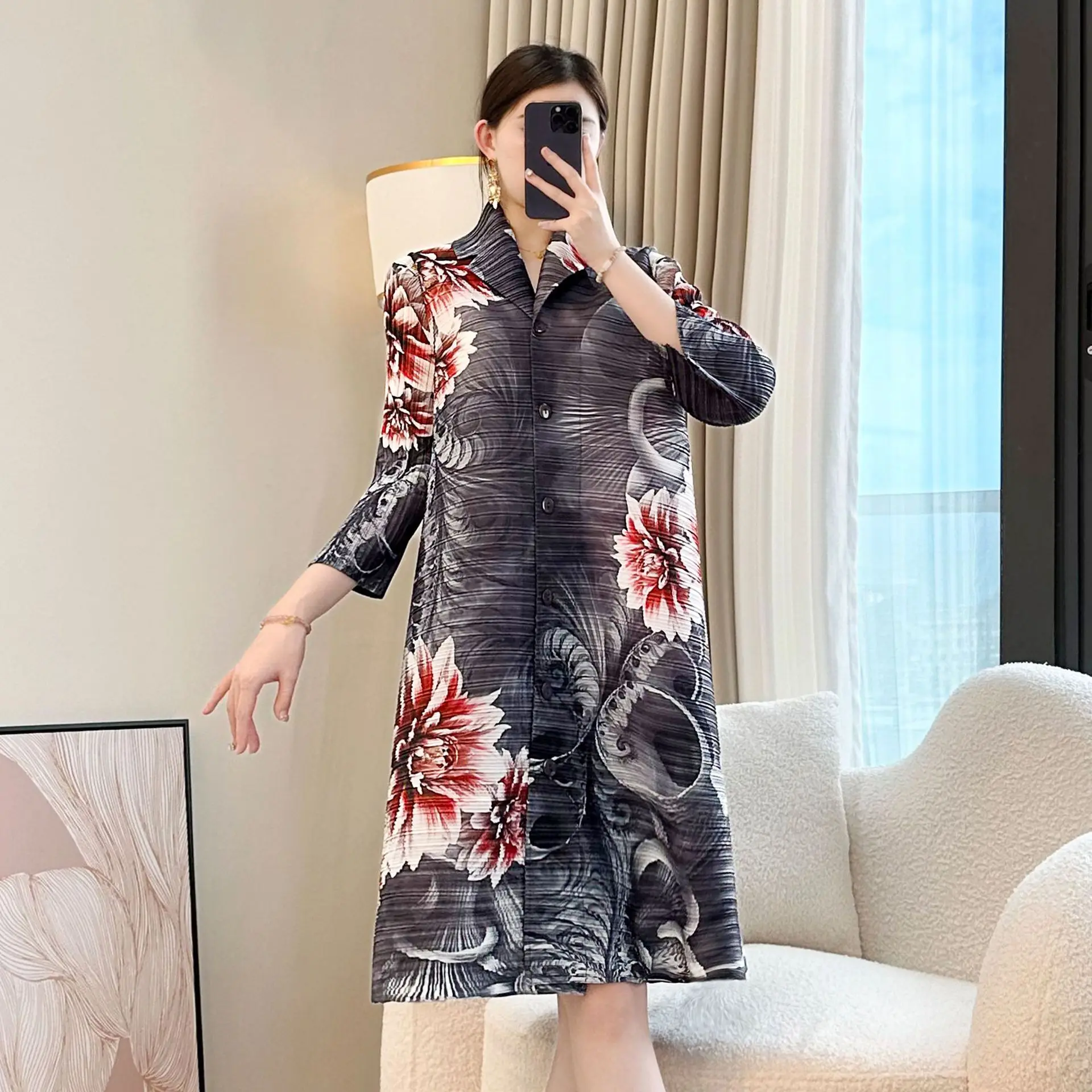 Miyake 2026 Summer New Women's High-End Age-Reducing Pleated Dress Vintage Loose Western for Mother's Seaside Vacation Chiffon