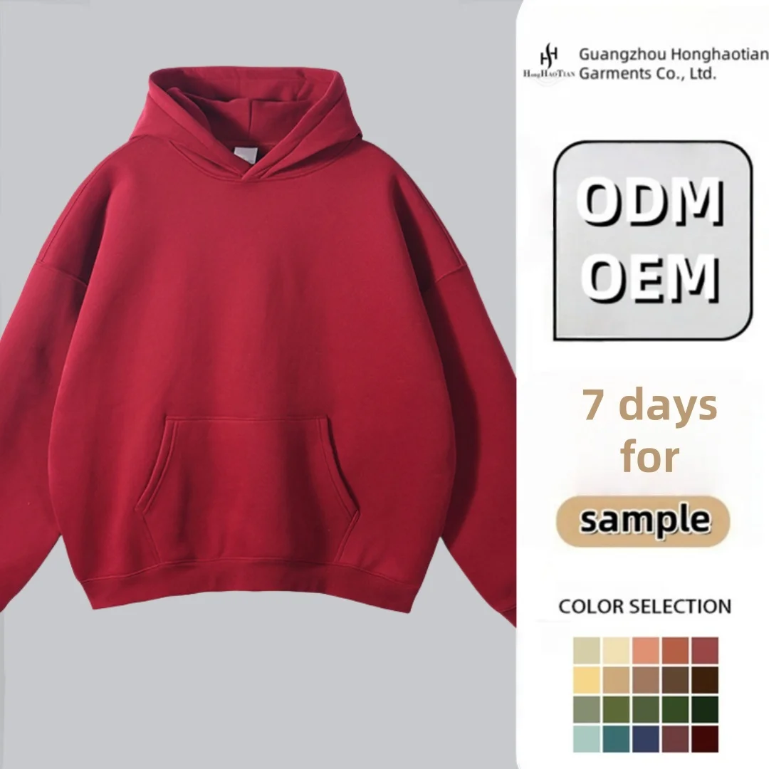 High Quality 380g No Strings Blank Fleece Drop Shoulder Hoodies Men Cotton Pullover Wholesale Custom Printing Embroidery Hoodies