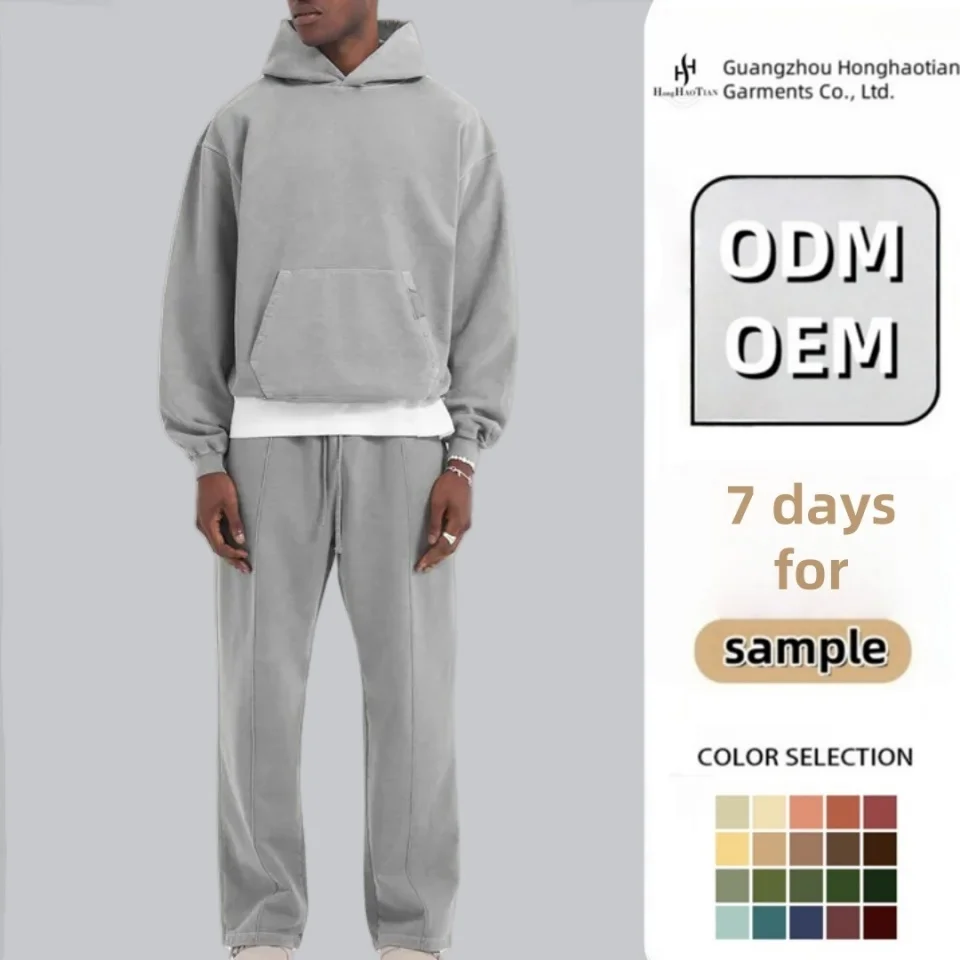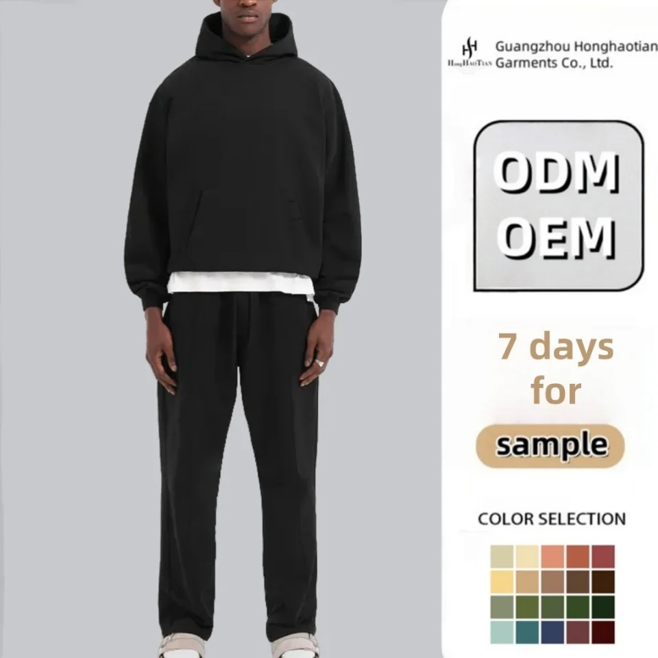 Custom Logo Track Suits French Terry Hoodie Set Mens Blank Heavy Weight Thick Fleece Cotton Oversized Tracksuits for Unisex
