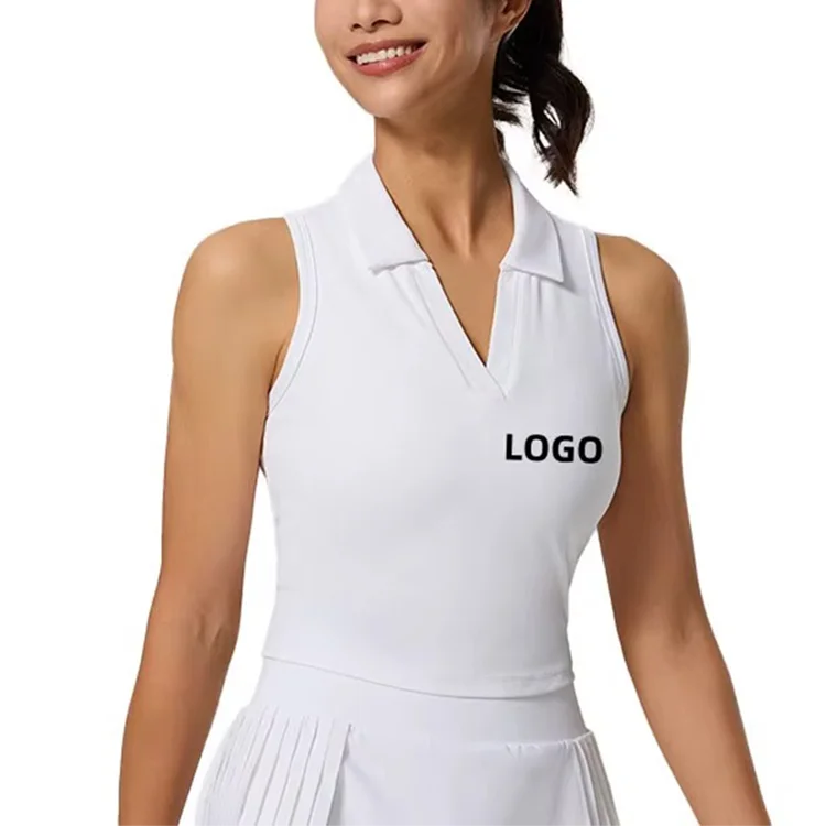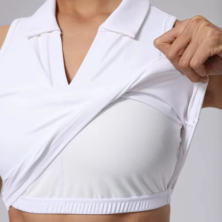 Women's Breathable Sleeveless Sports Gym Training Vest with Lapel Design Slimming Tennis Wear Ladies Summer Running Active Tops
